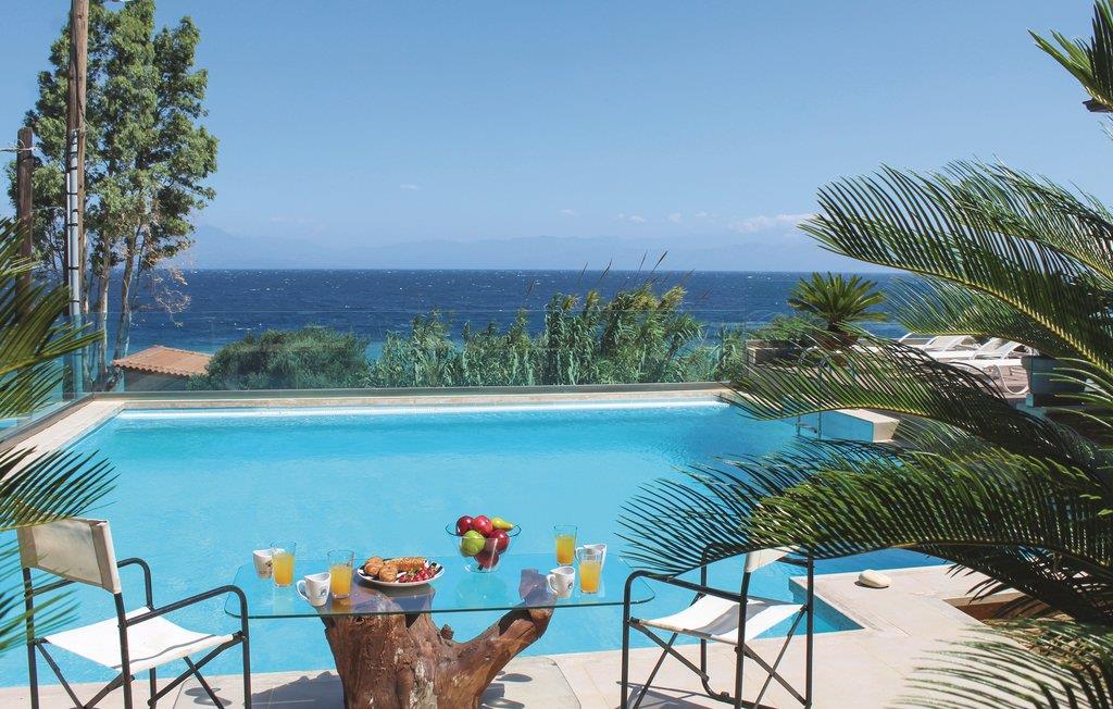 Dette luksuriøse feriehus ligger ved kysten i Petalou i Korinthbugten med under 140 km til Athen.
