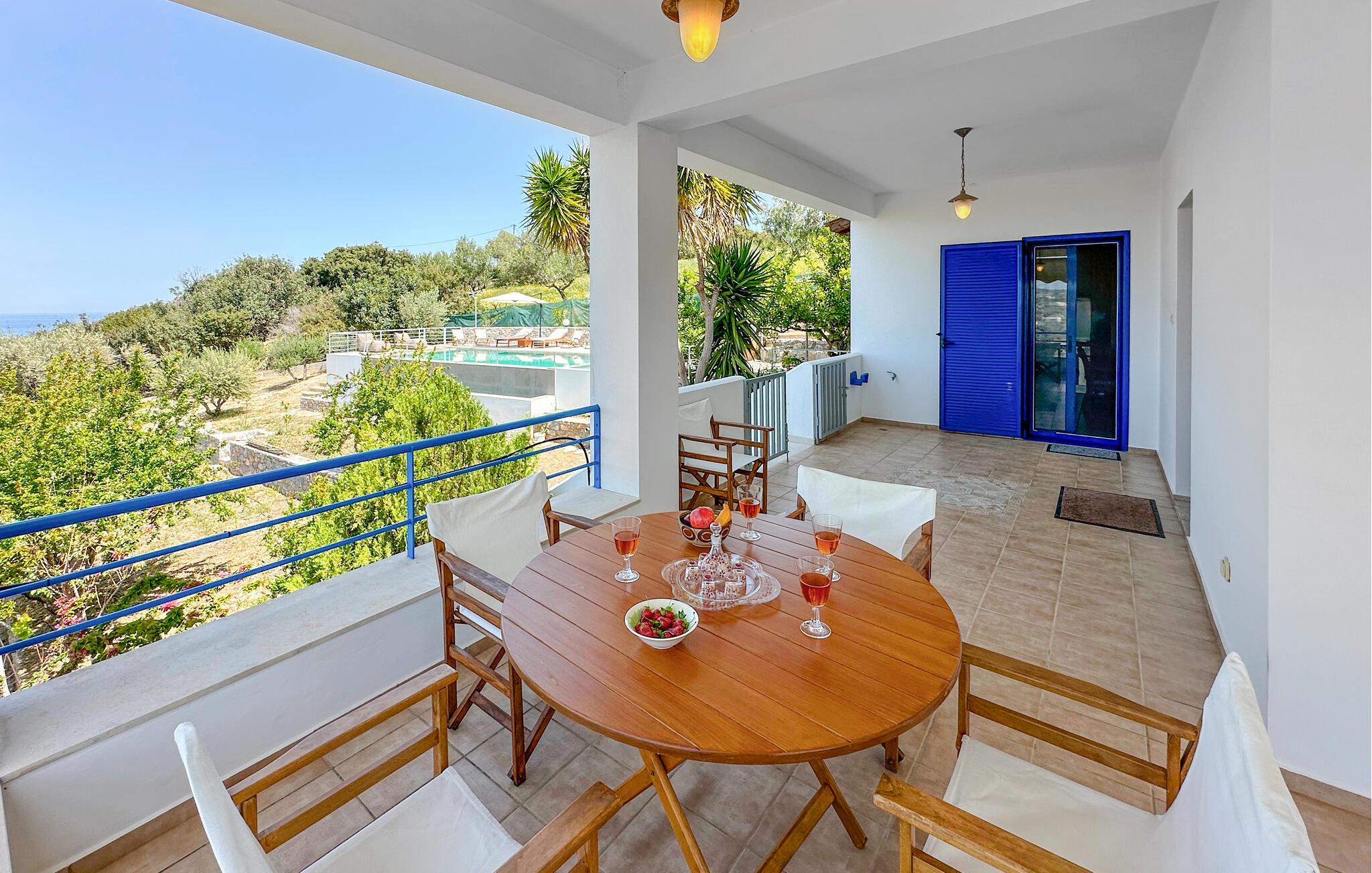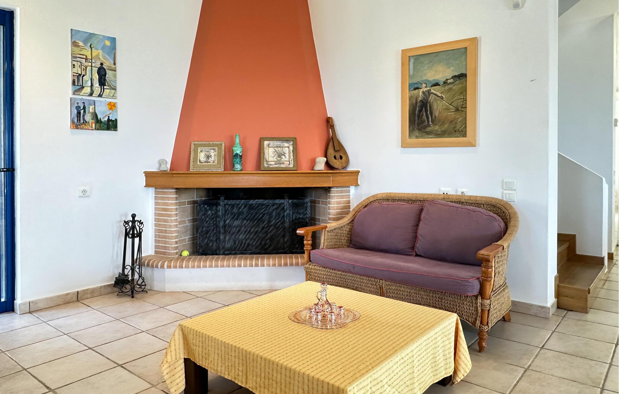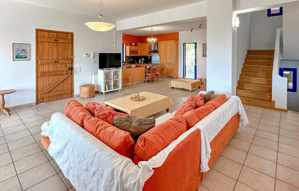 Dette rummelige feriehus på Kreta giver jer en smuk kombination af fred, ro, komfort og en god beliggenhed. Nyd ferien sammen i et miljø, der lægger op til at sætte hverdagen på pause og have det rart. Husets farvekoordinerede indretning skaber en varm atmosfære med personlig karakter. Find jer godt til rette i den store hjørnesofa og nyd jeres frie ferie i fulde drag. Slap af ved den åbne brændeovn eller tilbered måltider sammen i det hyggelige køkken. Spisebordet i køkkenet lægger op til fælles morgenmad om morgenen, mens et andet spisebord i stuen byder på plads nok til hyggelige aftener.