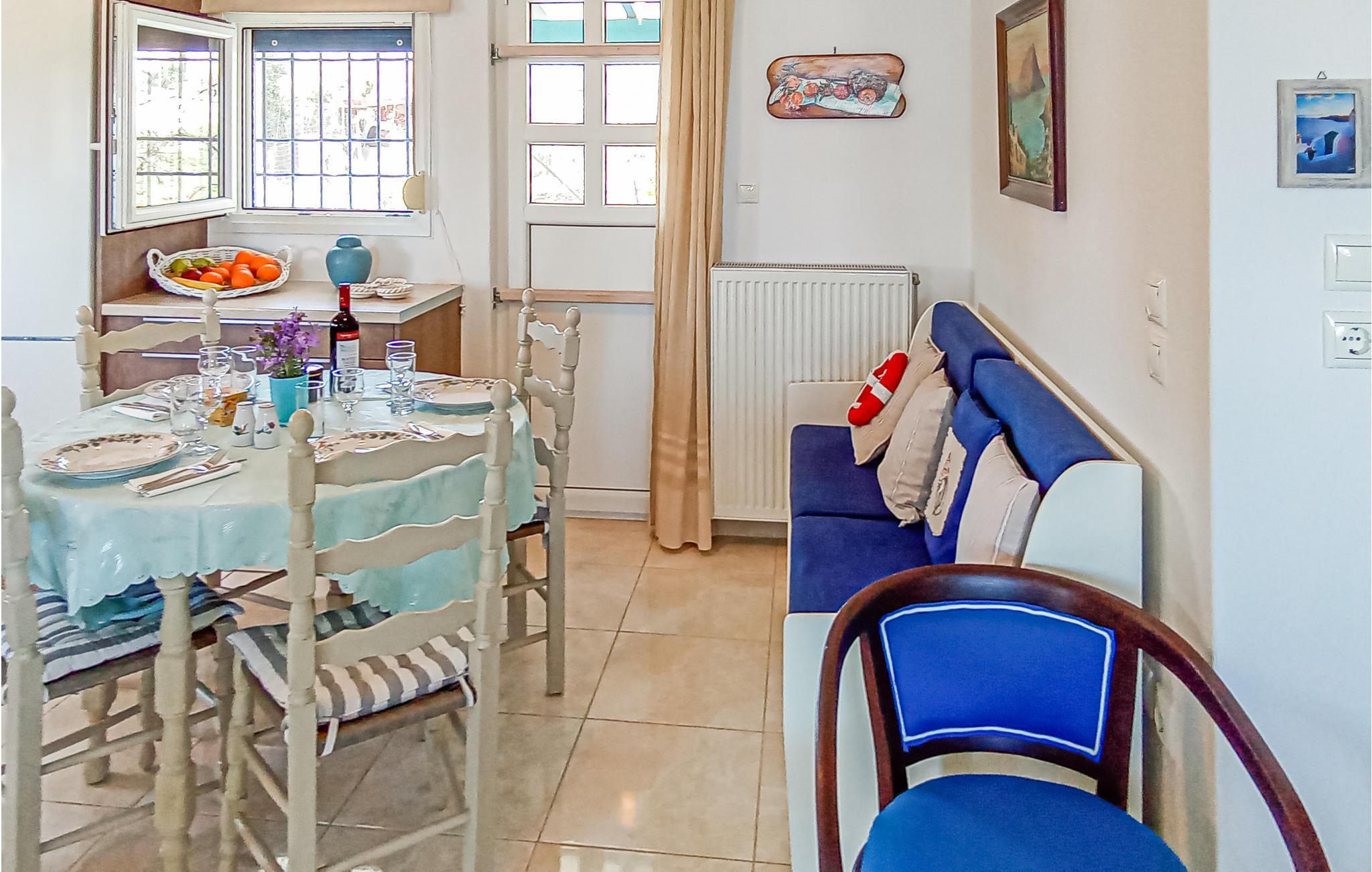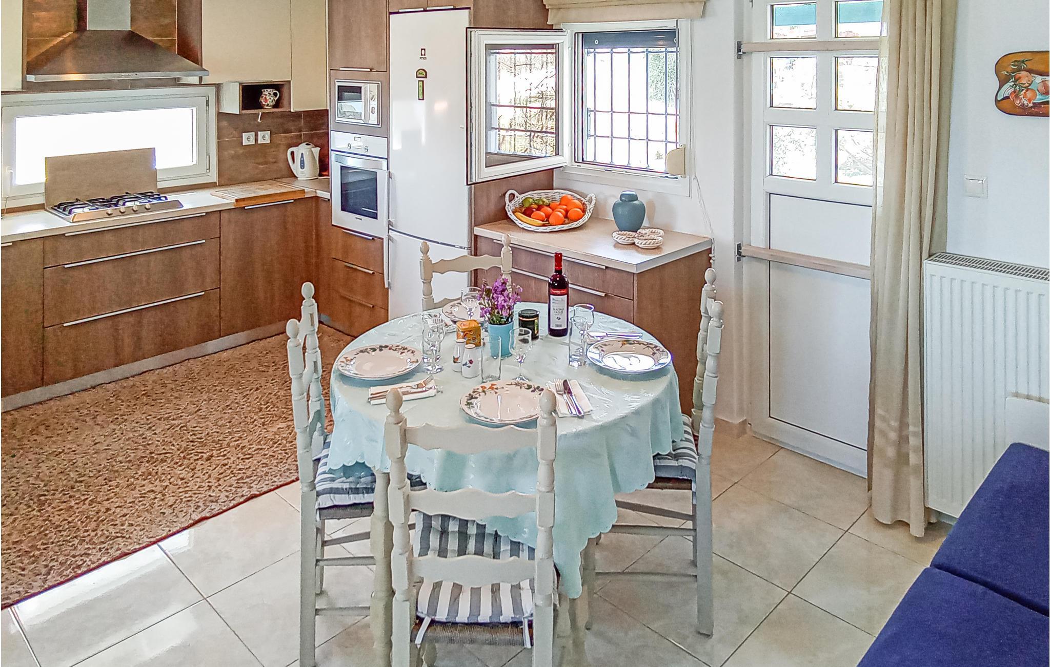 Om aftenen kan I trække jer tilbage, hvis I ikke har lyst til at tage ud at spise. Restauranter og butikker ligger kun få hundrede meter fra huset. Her kan I glæde jer til græske specialiteter eller international mad. Børnene kan lege på den indhegnede grund, mens I nyder solnedgangen over et glas vin.