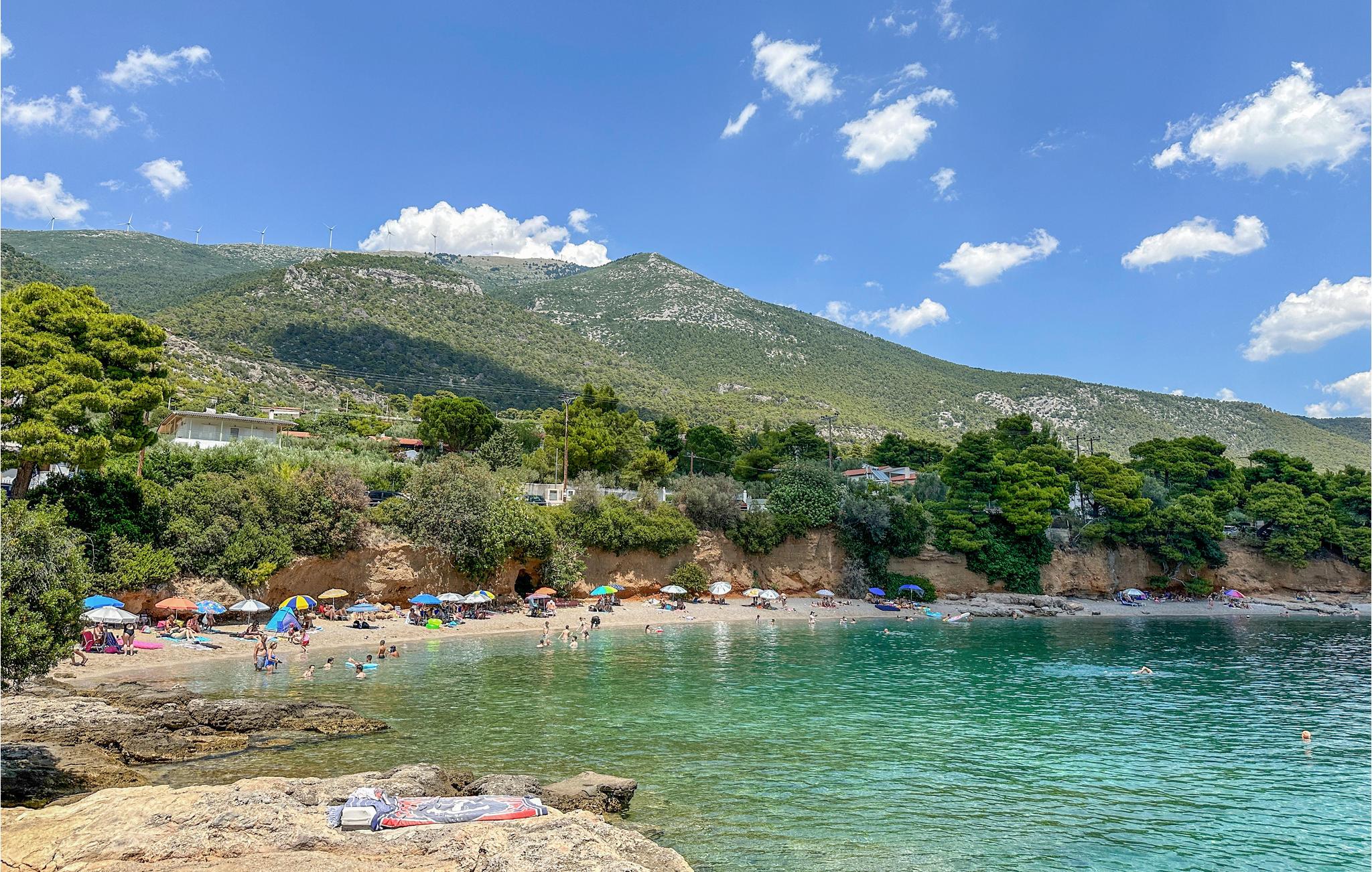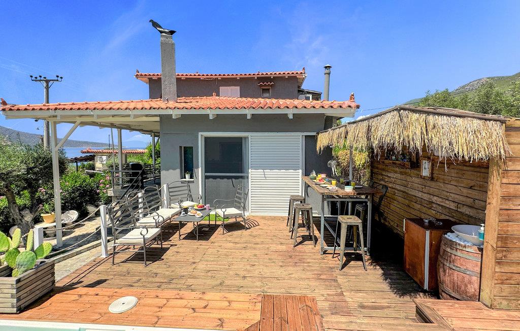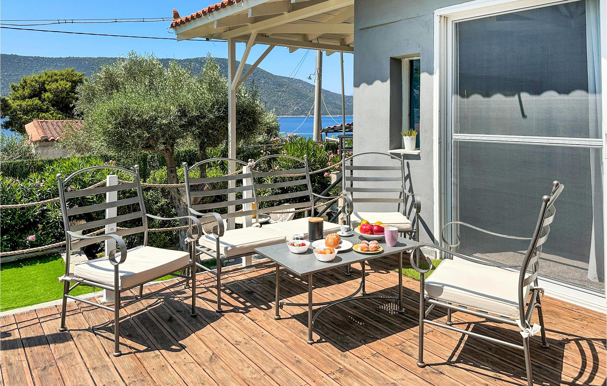 Ved Korinthbugten ligger dette feriehus, blot 20 m fra stranden Prosily i Porto Germeno. I haven er der både blomster og træer, i huset er der bl.a. to soveværelser, et godt udstyret køkken og en stue med sovesofa. Tag på opdagelse i det gamle citadel Porto Germeno, hvor I kan se ruinerne fra et af antikkens højeste tårn. Andre udflugtsmål: Vilia (10 km), Theben (20 km) og Athen (48 km) med mange aktiviteter, monumenter og seværdigheder. Området ligger omgivet af skovklædte bjerge, og Kithaironbjergene som er populære blandt paraglidere.