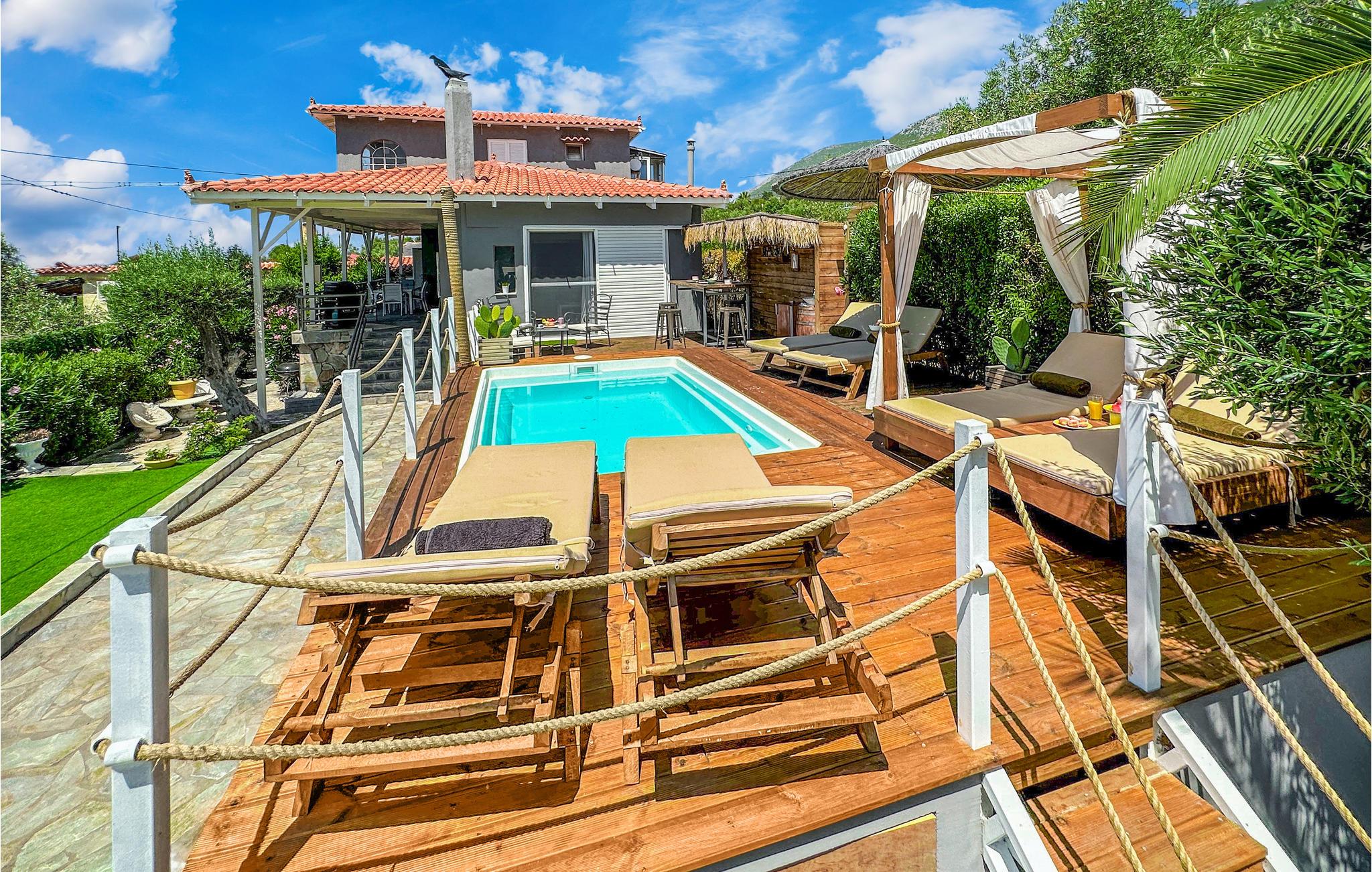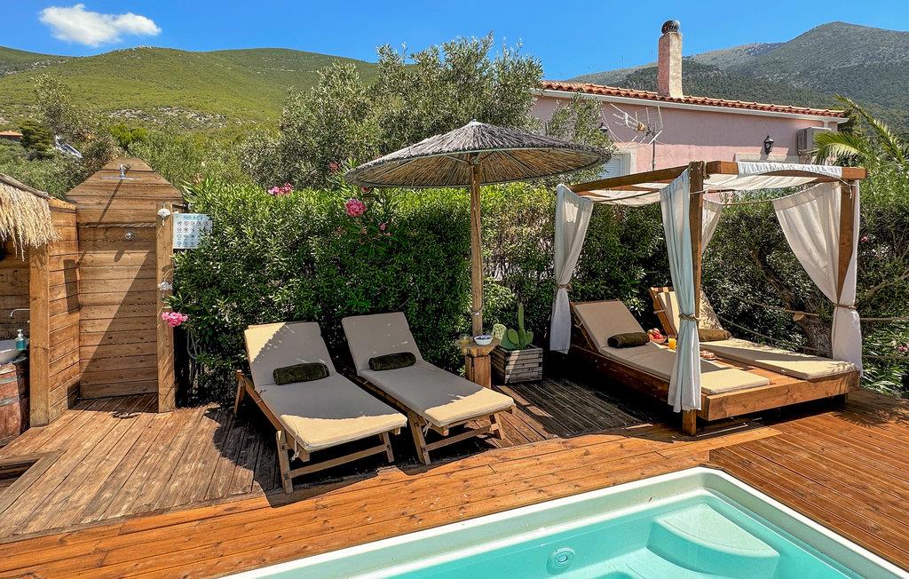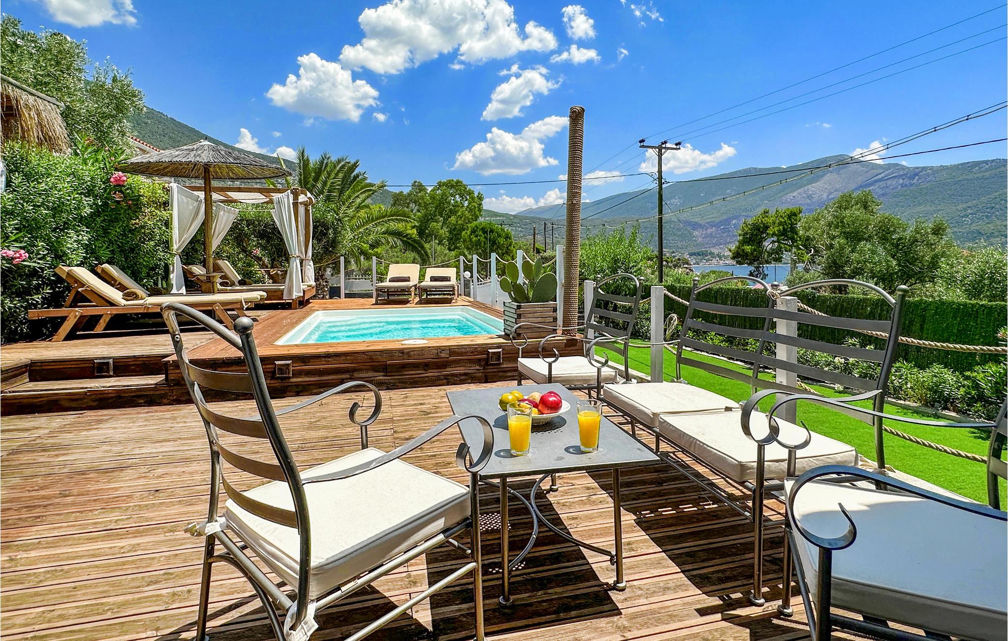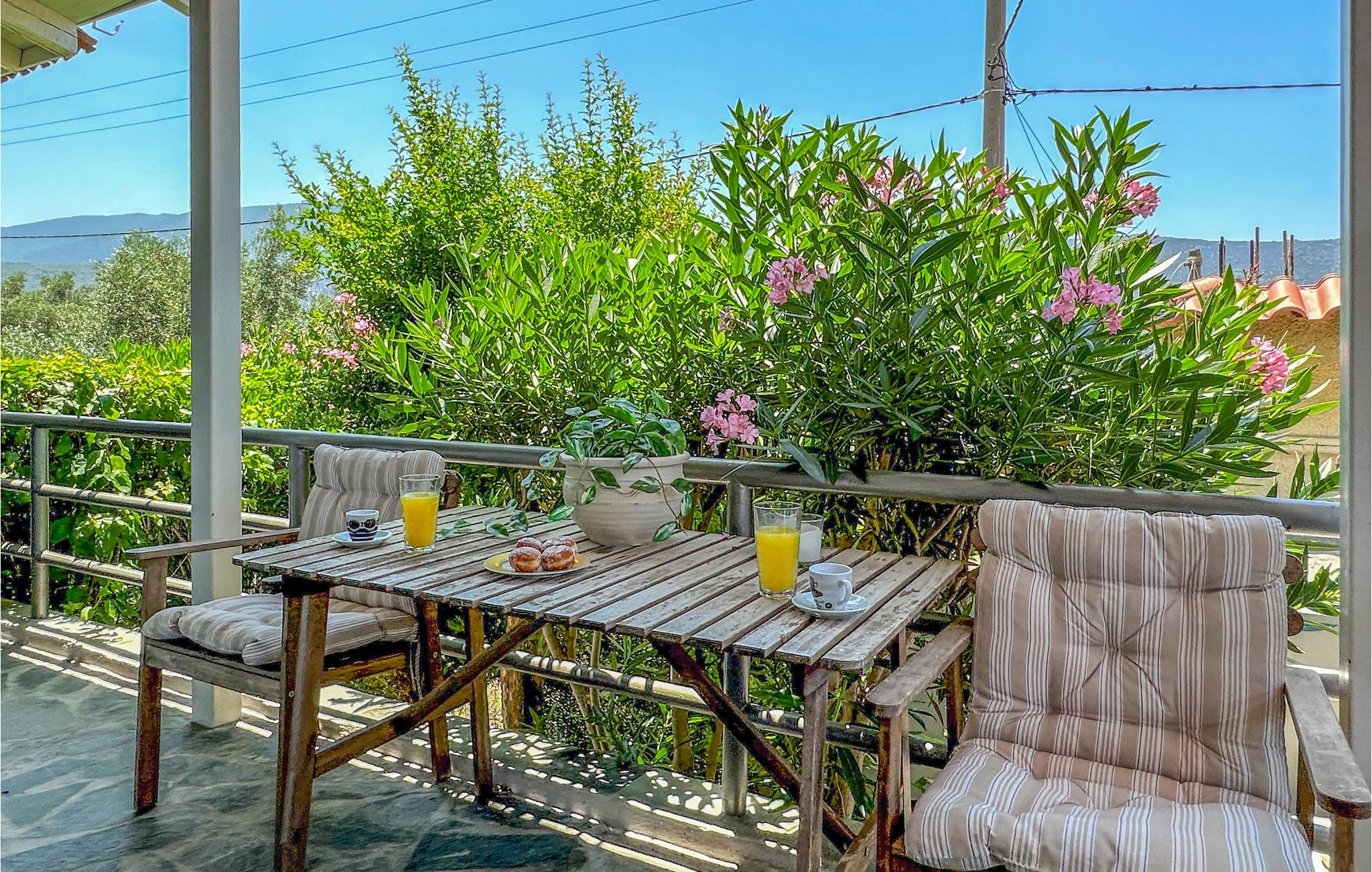 Ved Korinthbugten ligger dette feriehus, blot 20 m fra stranden Prosily i Porto Germeno. I haven er der både blomster og træer, i huset er der bl.a. to soveværelser, et godt udstyret køkken og en stue med sovesofa. Tag på opdagelse i det gamle citadel Porto Germeno, hvor I kan se ruinerne fra et af antikkens højeste tårn. Andre udflugtsmål: Vilia (10 km), Theben (20 km) og Athen (48 km) med mange aktiviteter, monumenter og seværdigheder. Området ligger omgivet af skovklædte bjerge, og Kithaironbjergene som er populære blandt paraglidere.