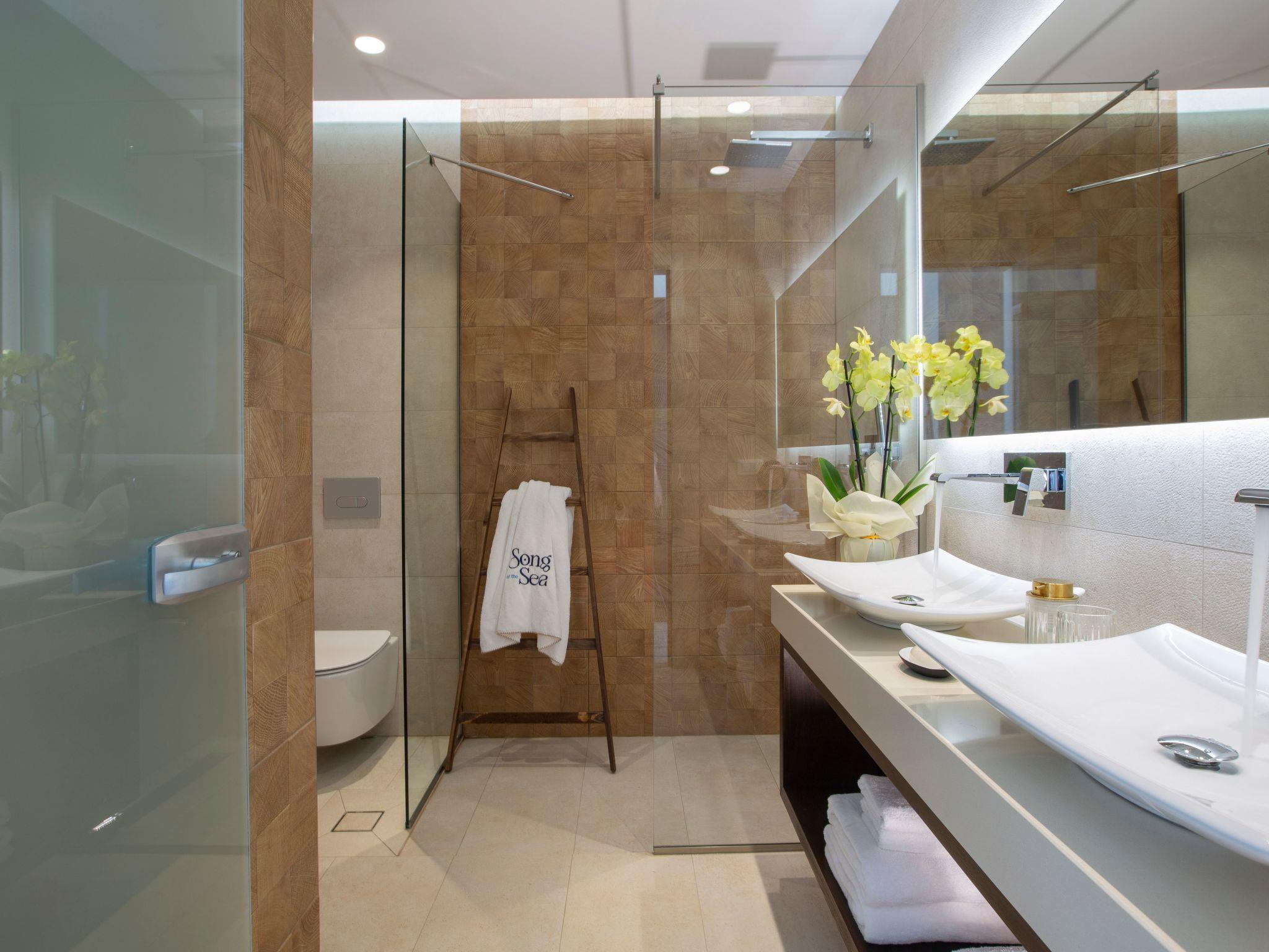 Ample lounging and sunbathing areas are available, complete with comfortable sunbeds and umbrellas.