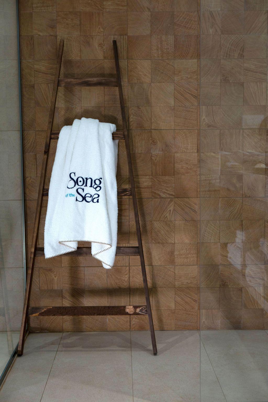 A private swimming pool allows guests to cool off on warm summer days while enjoying the breathtaking sea views.