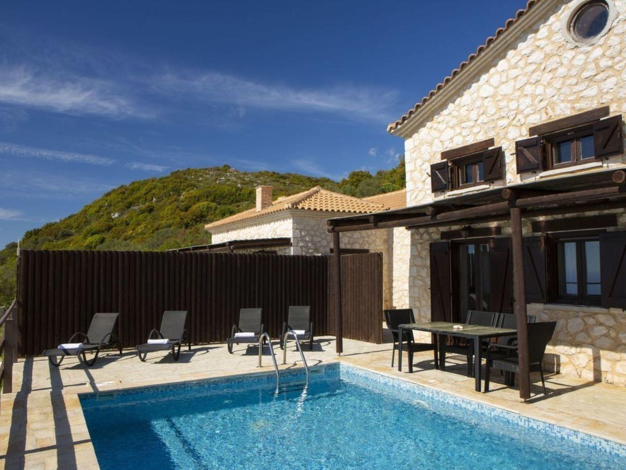 The private pool area gives a spectacular view of the Ionian Sea and invites you to relax outside with friends or family. The stunning sunsets with their wide range of colours will offer unforgettable magical moments and the high-end balcony will make you feel that you are hoovering above the sea.