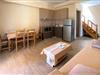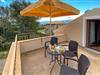 Dette skønne feriehus består af fire pæne lejligheder (GST128 - GST131). Denne lejlighed er fordelt over 1. og 2. sal og indeholder alt, hvad I får brug for til en ferie uden bekymringer. Indretningen er enkel og funktionelt i en varm farveskala, og I kan se frem til at spise morgenmaden på jeres egen terrasse.