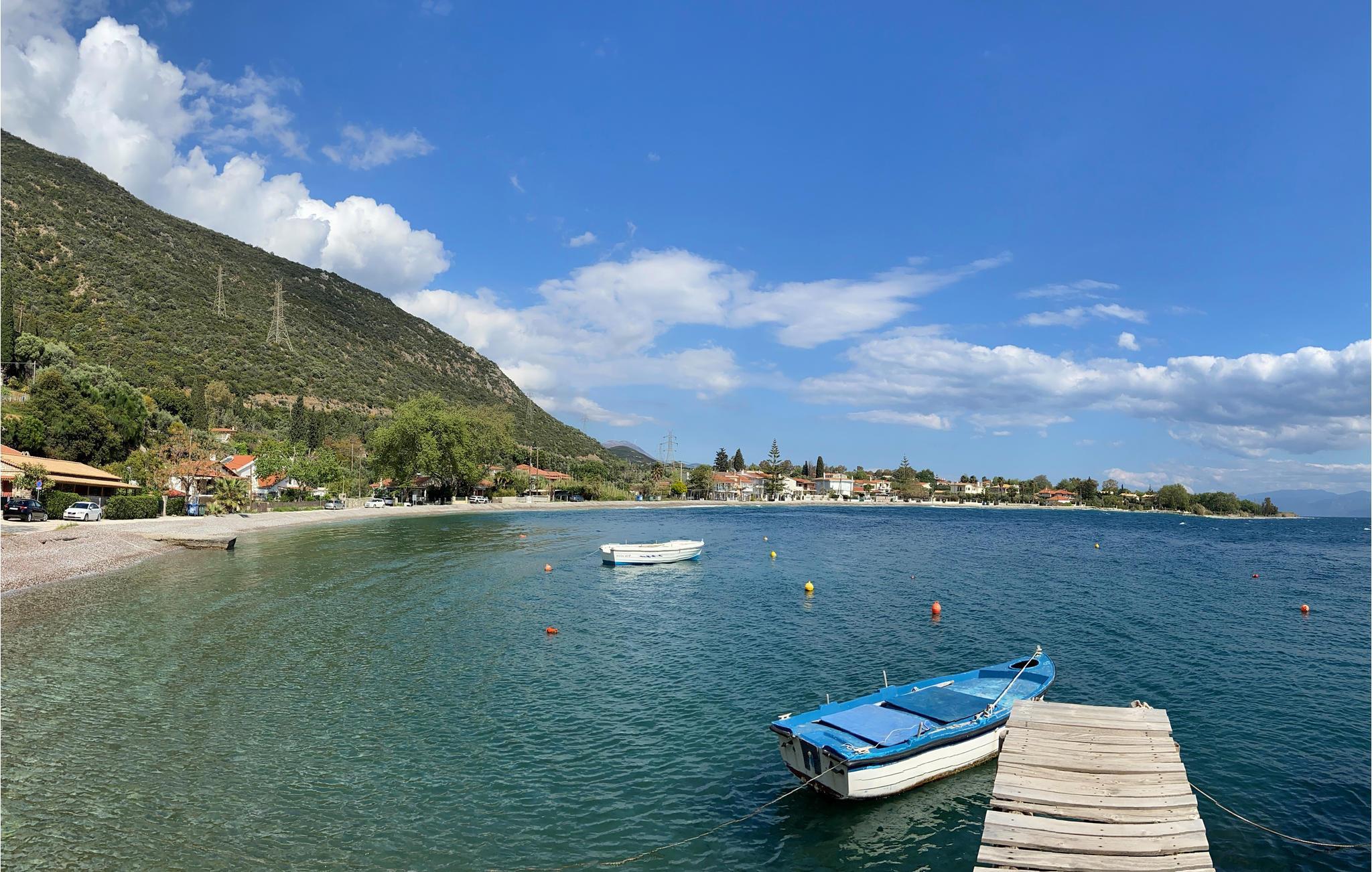 Gå ture med hunden og se på bjergene, som danner en flot kulisse bag huset. Stenstranden ligger kun få 100 meter væk. Her kan I læne jer tilbage i et par liggestole og sætte verden på pause. Langs stranden er der barer og caféer, hvor I kan købe en lækker græsk frappé.