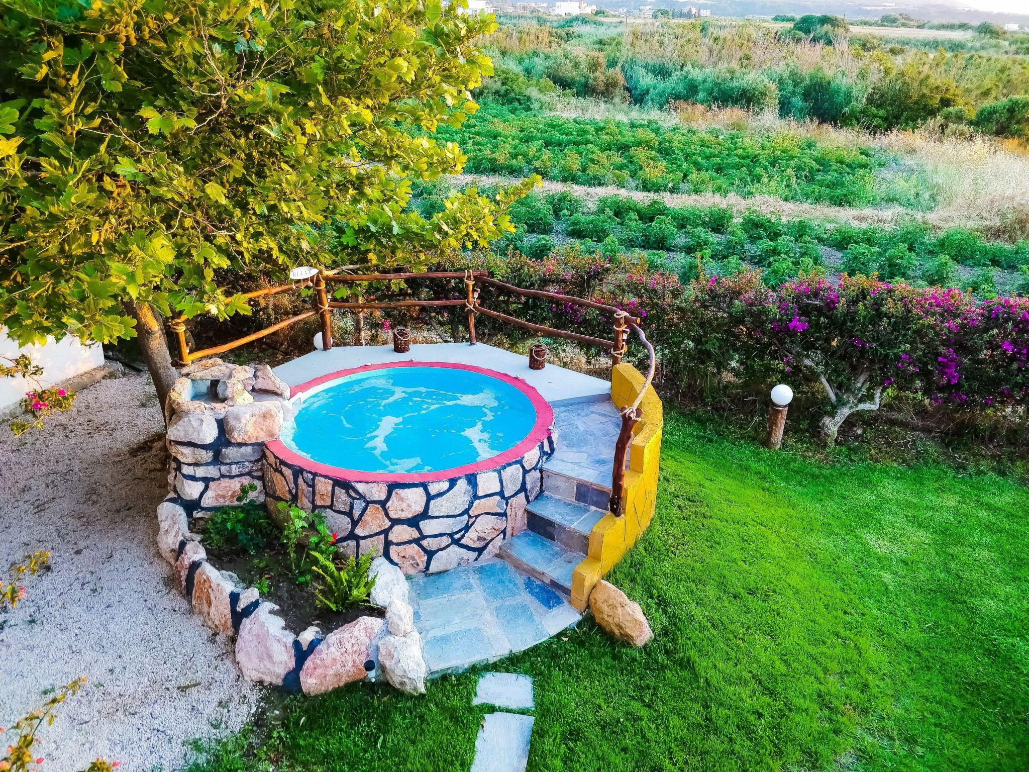 Outside the villa, a large shady veranda with a view to the sea makes al fresco dining or evening drinks a delight. In the front yard, a perfectly decked out BBQ area with a traditional village oven is at the disposal of our guests. At the entrance of the property there is ample space for car parking, and next to the driveway there are lawns where one can play volleyball or other fun sports, enjoy a nap in the hammock, or soak in the sun on the loungers.