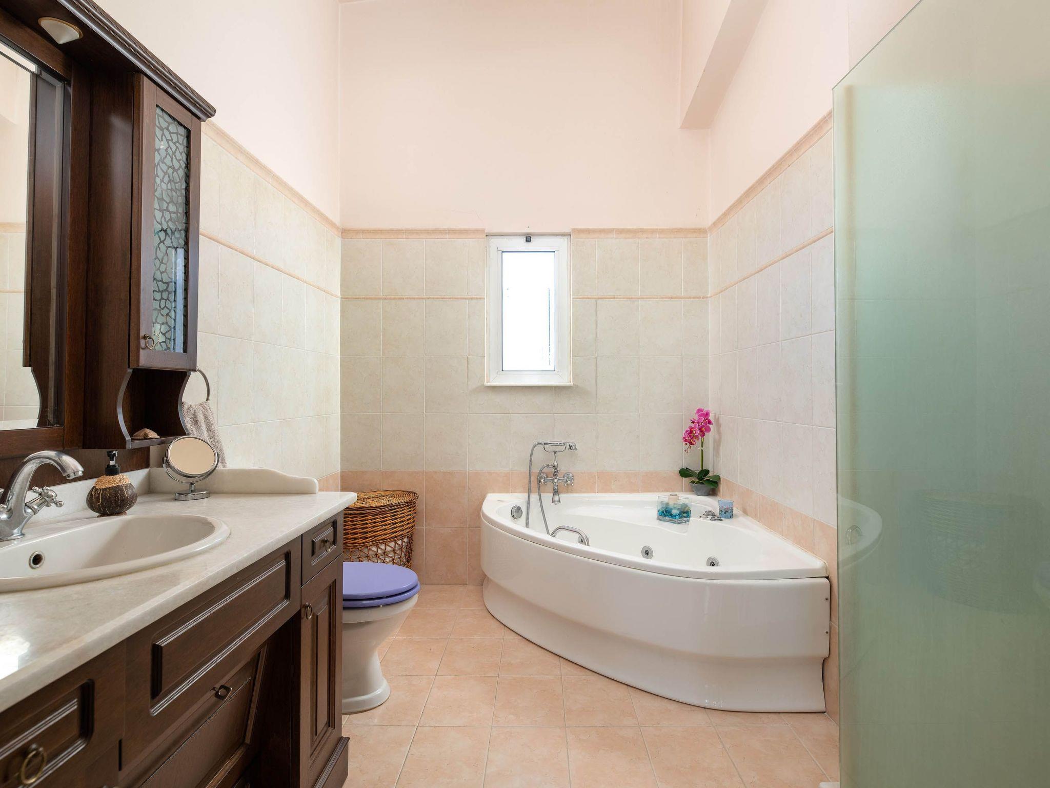 Zenia Villa is a dreamy property located at Damatria Village, less than 15 minute driving distance from the airport. It offers an exquisite private swimming pool and an exotic garden with a pot. The nearest beautiful beach is found at a driving distance of only 10 minutes. It conveniently accommodates up to 7 guests and promises privacy and an unforgettable stay. Zenia Villa has an incredible interior design with colorful details. It offers 3 fully air-conditioned bedrooms with double beds and balconies. Also, it has 2 bathrooms. One of them with a shower and another one with a bathtub with jacuzzi features for your ultimate relaxation. The property has a fully equipped kitchen suitable for any meal preparation. This beautiful villa has a spacious open plan living room in earth tones with comfortable sitting areas, equipped with flat screen TV with Netflix and satellite channels. There’s free Wi-Fi access throughout the property. Outdoors, there’s a private swimming pool surrounded by the sunbeds , a hammock and an exotic atmosphere that will give you a carefree feeling. There’s a picturesque garden with a pond. You can always prepare a meal at the BBQ facilities and enjoy a gathering with your loved ones especially recommended on the evening hours.