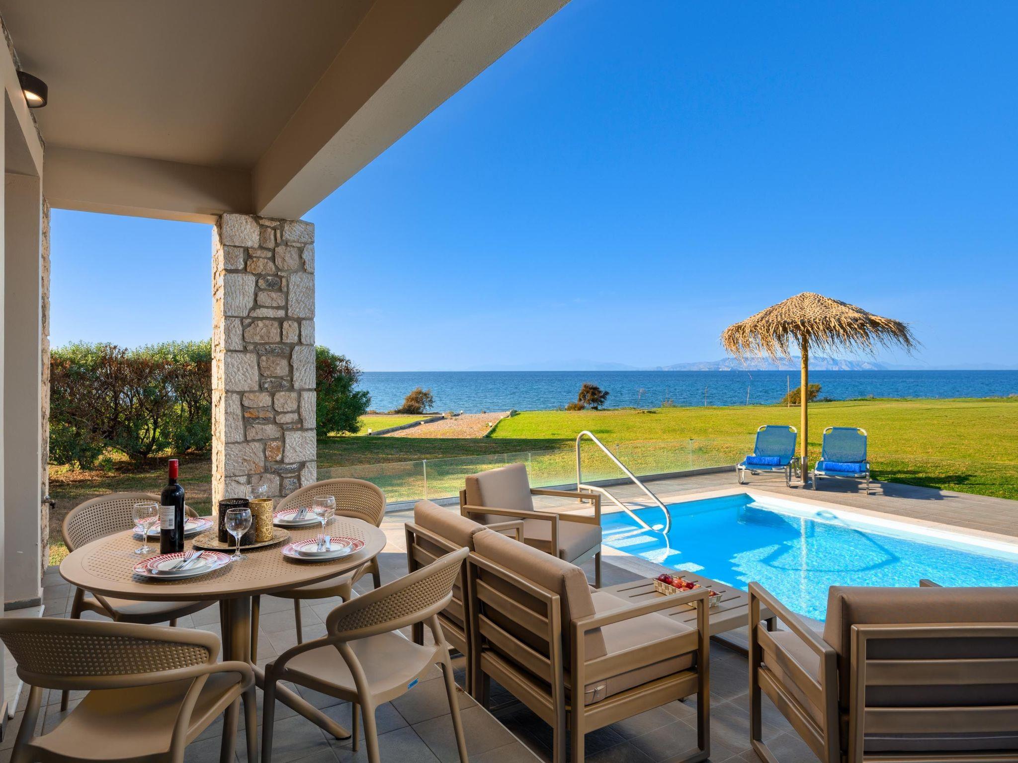 The decoration is simple, practical and comfortable. On the first floor of Diagoras Villa there are 2 fully air-conditioned bedrooms with double beds on the first floor. Also, on the ground floor there’s a comfy double sofa bed in the living room. There is a bathroom with a shower in each floor. The kitchen is fully equipped and suitable for any meal preparation and shares the space with the beautiful living room and the peaceful dining area. Guests will find a screen TV with satellite channels and free Wi-Fi access throughout the property. Outdoors, there’s an incredible private swimming pool with its sunbeds where you can relax under the Aegean sun. The sea view is quite mesmerizing and unique. Guests will have the opportunity to sit and relax at the patio and enjoy the BBQ facilities.
