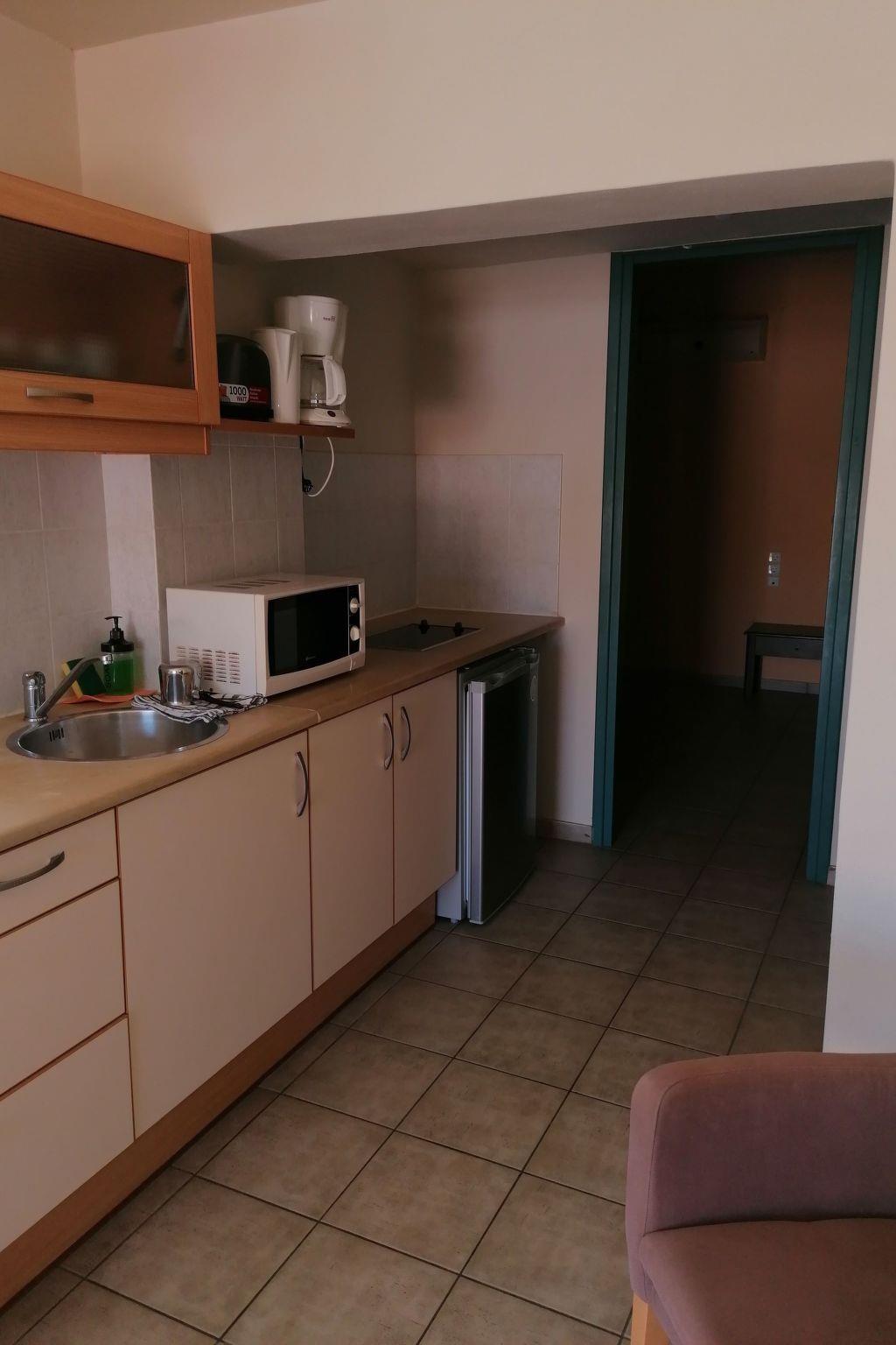 The suite's veranda is very spacious (aprox. 48 sq. m.) where you can sit and relax and enjoy the breathtaking view over the Cretan Sea, any time of the day. Tip: sunset time is the best time of the day, the sea takes beautiful colors...You can relax in our swimming pool or swim in the crystal clear waters of Stalis.