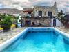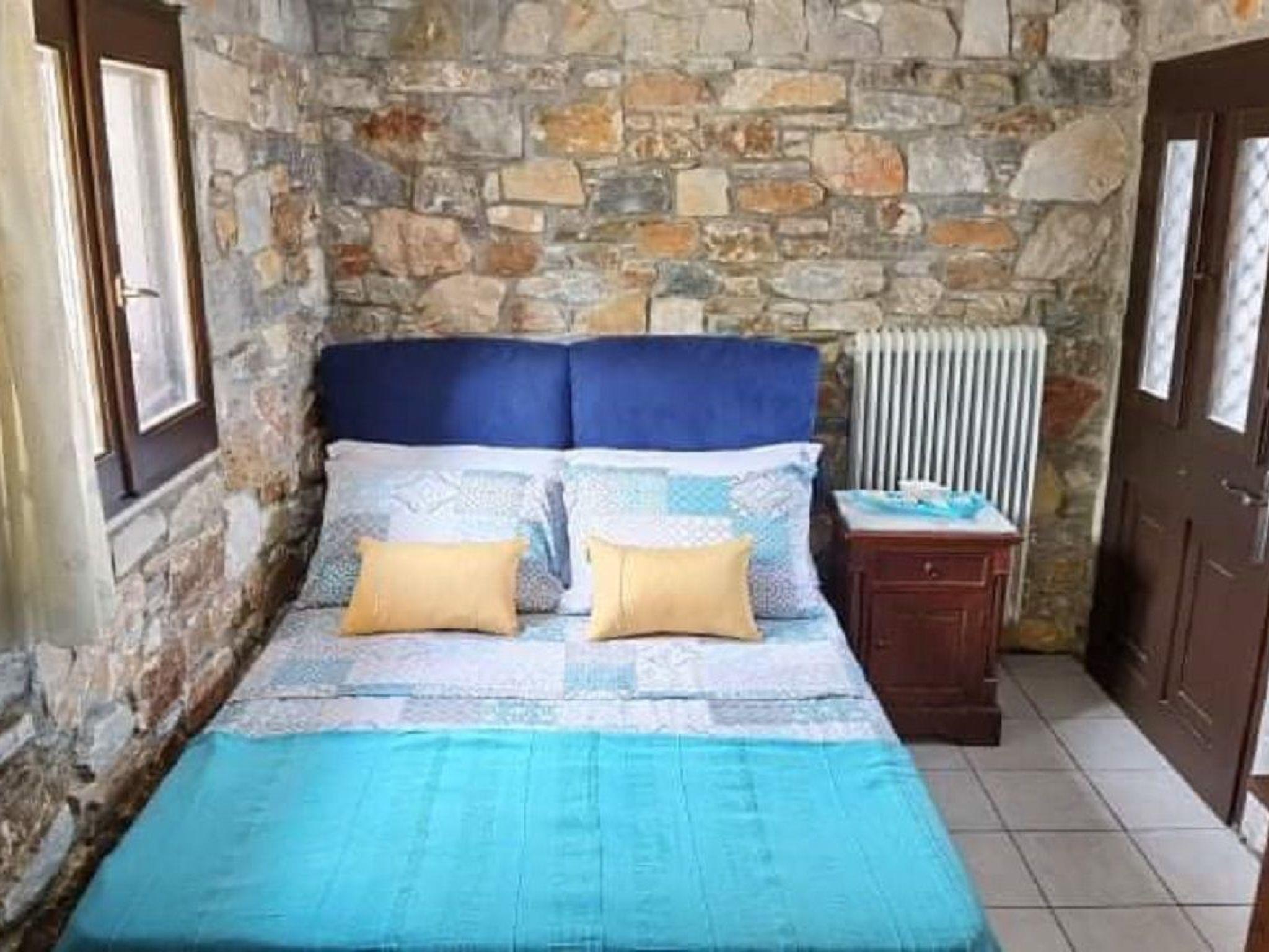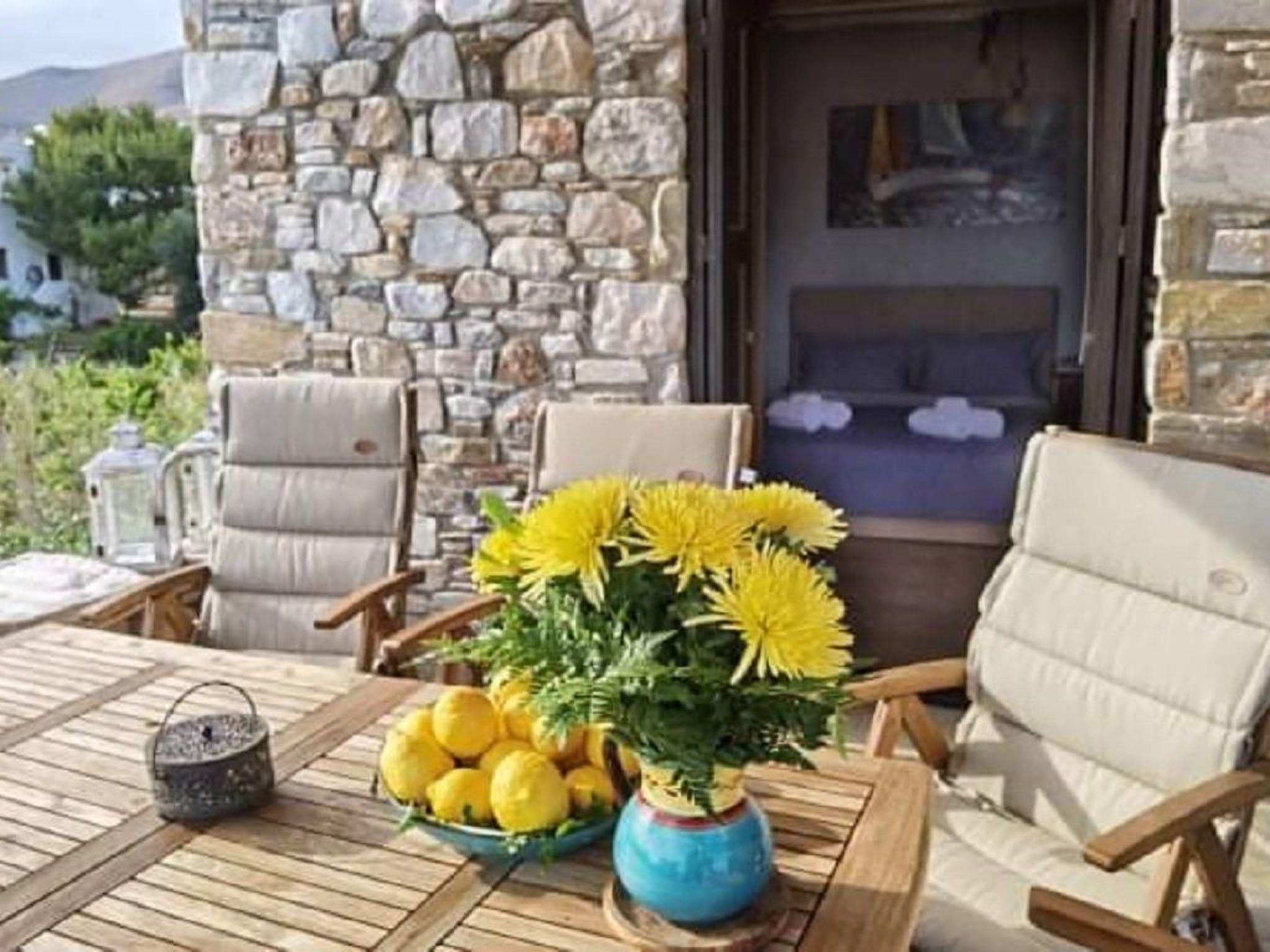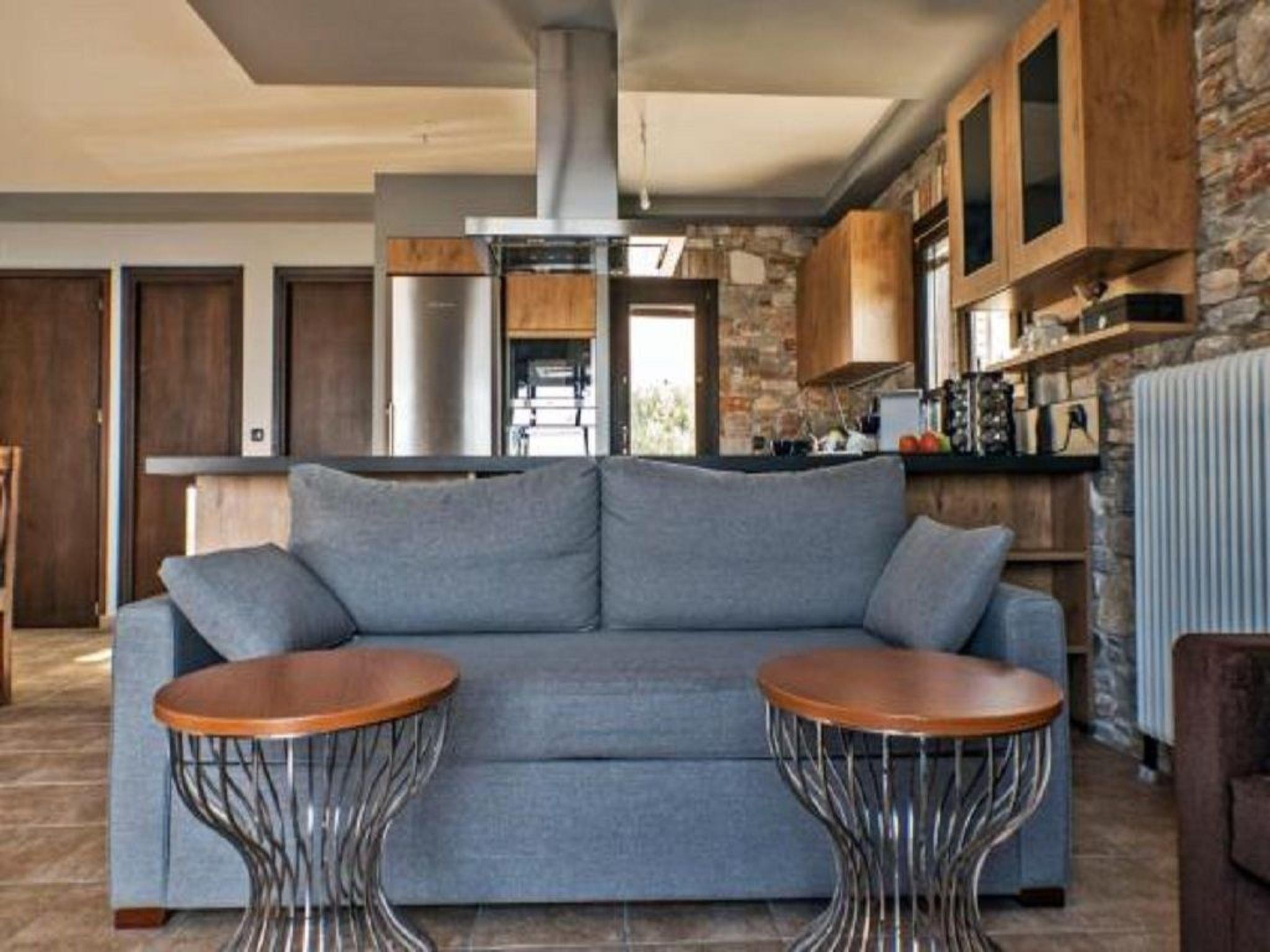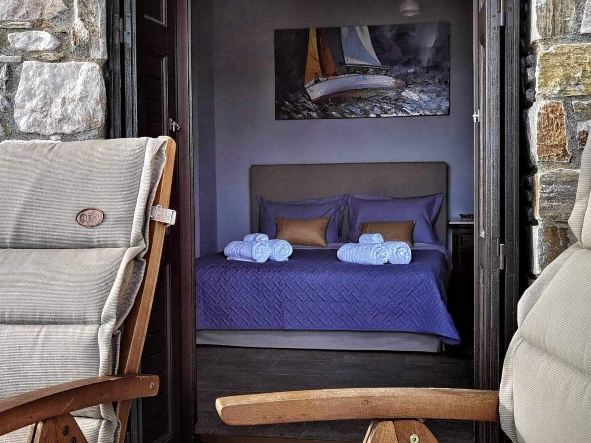 The 265sq.m Villa offers charming design and is entirely crafted from native stone.The property consists of two floors,connected by indoor and outdoor stairs.On the upper floor guests will find a fully equipped,modern ,chef style kitchen with a charming balcony connected to it , a living room with sofa/bed ,TV and stunning sea view and a very comfortable and characteristic dining area. There are two bedrooms on that floor -the Master bedroom,with sea view and en-suite bathroom that even has a jacuzzi in the bathtub ,and a small ,single bedroom with a beautiful window overlooking at the gardens on the back of the house. There is a small WC for guests on that floor. The entire front of the floor is occupied by a big veranda ,offering captivating views of the nature and endless blue of the sea.The ground floor consists of two double bedrooms and one extra double bed that is not in a separate bedroom but it is still in a calm zone and it is a very comfortable place to rest. Many guests prefer to have their young children on that bed. There is also a fully equipped,traditionally decorated kitchen on that floor that features all amenities such as oven,gas stove,coffee maker etc.A cosy living room with two coaches where guests can take a break from the hot summer days and A spacious and comfortable bathroom with WC ,a laundry and drying machine are making this floor a completely independent setting form the upper one. The entire home is air conditioned.