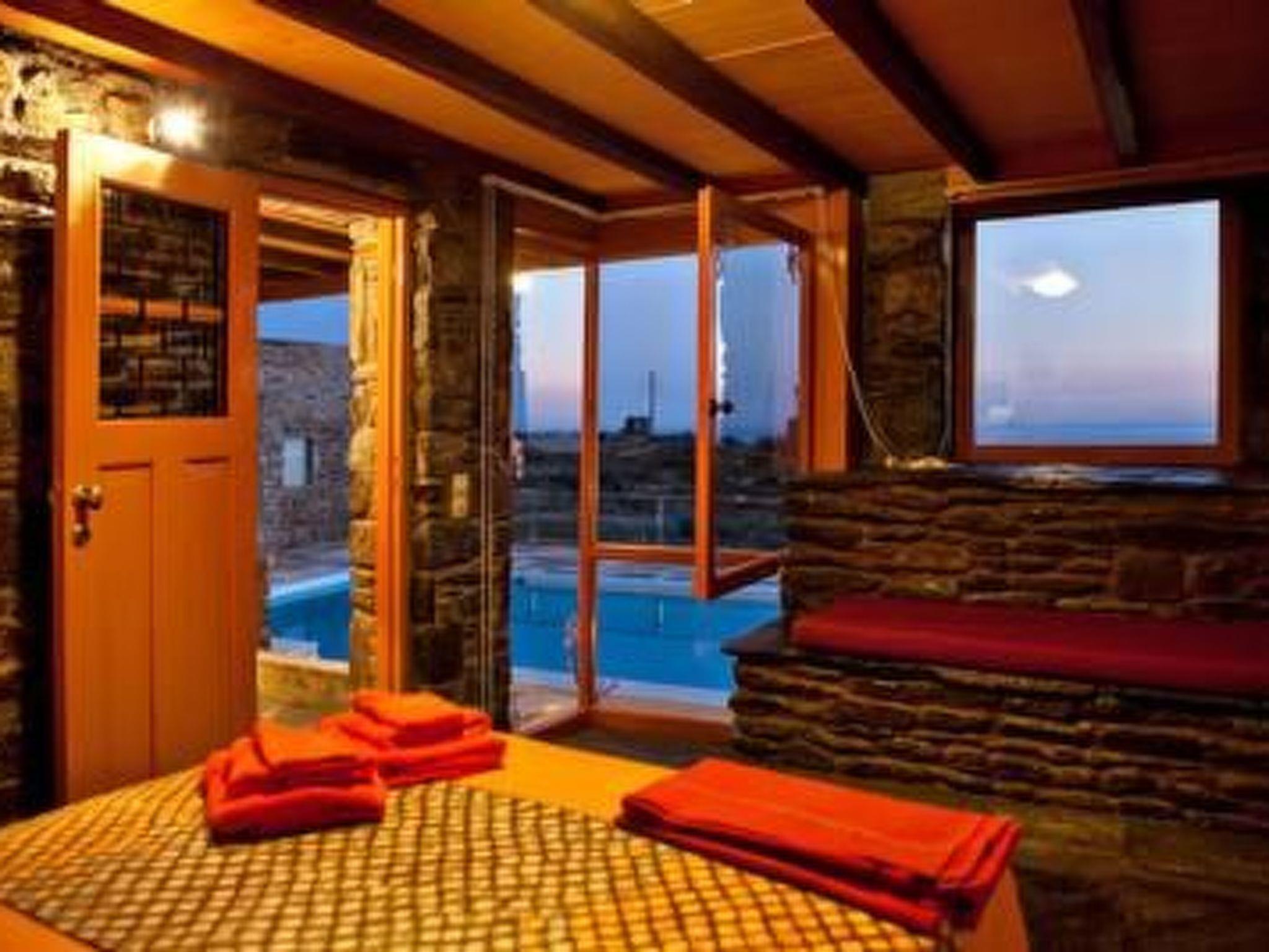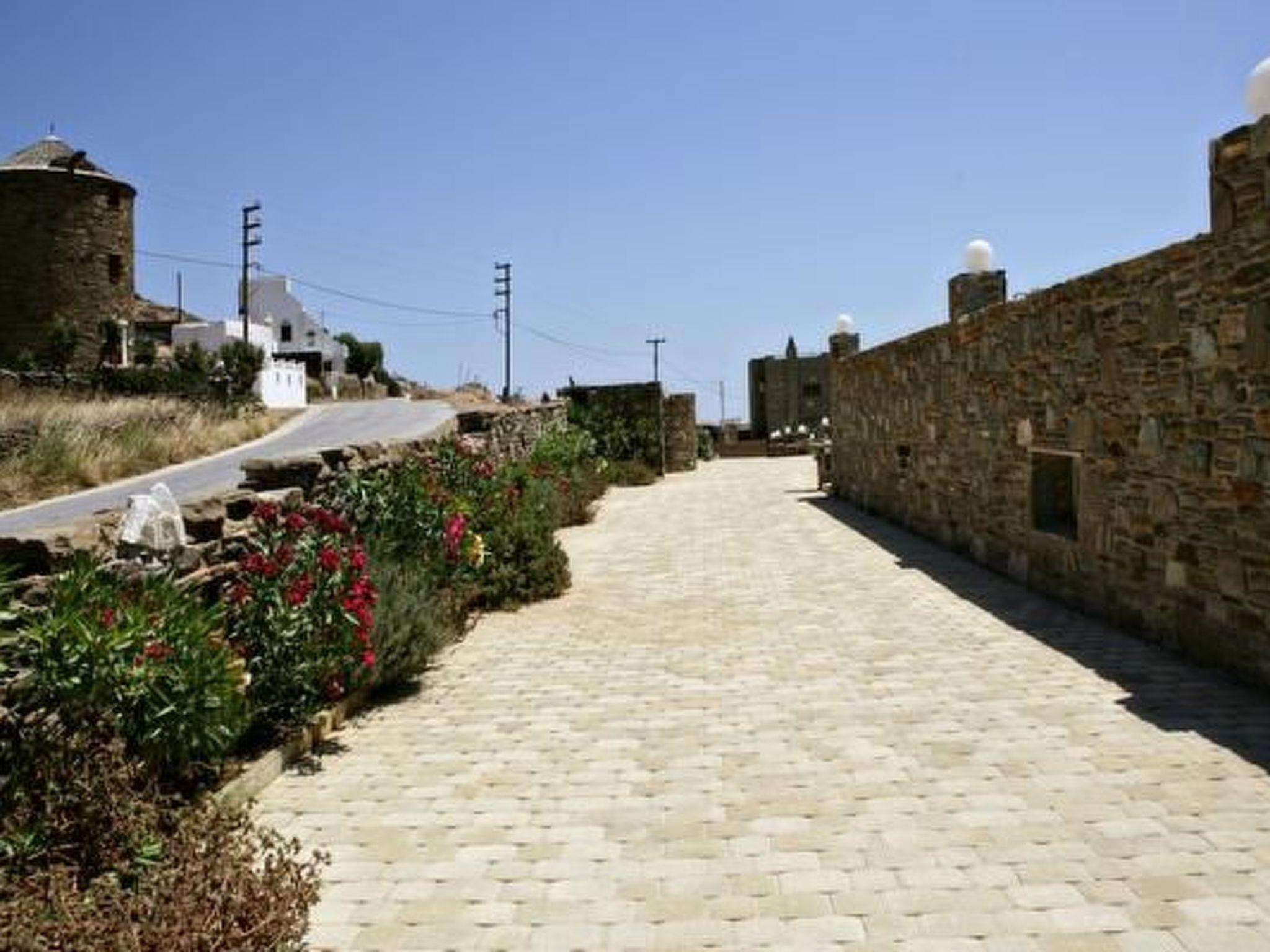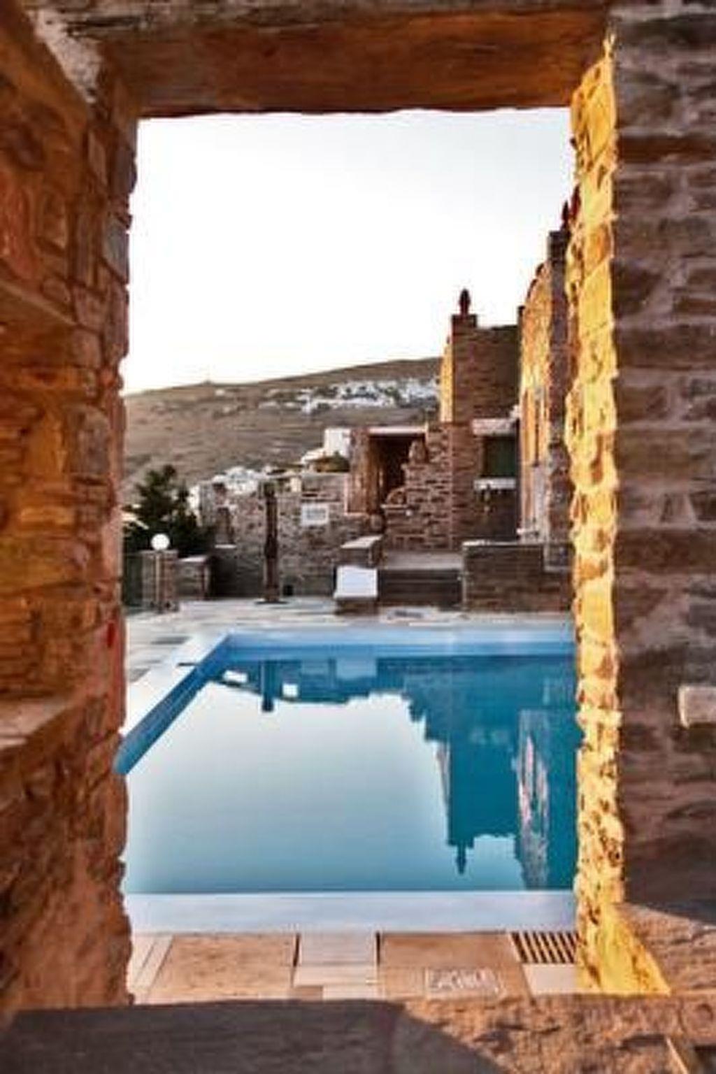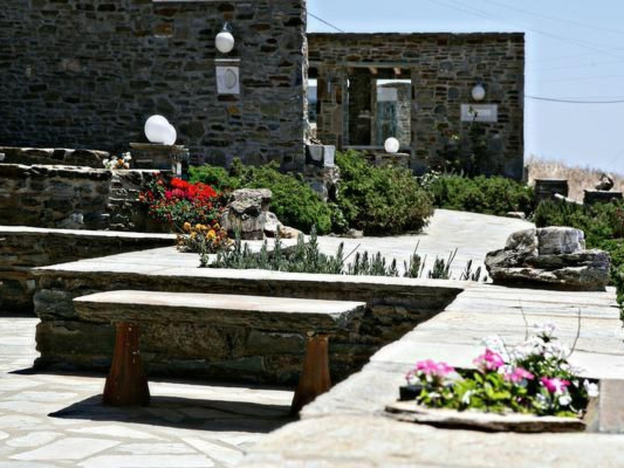 Villa Orange House - Habitart is a beautiful two-story house with 5 bedrooms. It is part of a complex of 5 dreamy houses, inspired by the traditional architectural style and natural surroundings of the island of Tinos, designed and decorated with meticulous attention to detail, while offering all the amenities of a modern holiday resort. The location of the houses offers breathtaking views of the Aegean Sea, the neighboring islands of Syros and Mykonos, as well as Tinos Town and the island's typical windmills. Each outdoor area is tastefully designed in a traditional style and adorned with many works by both renowned and local artists and sculptors. The stone floors, wooden windows, and split patio doors provide an authentic experience of Cycladic living, with the view and the surroundings, landscaped with plants and natural rocks, guaranteeing enchanting and relaxing hours outdoors. The ground floor of the house offers a beautiful, cozy living room, a modern kitchen with a fireplace, as well as three bedrooms and two bathrooms. The upper floor is accessed via an interior wooden staircase and consists of two additional bedrooms with two bathrooms. The exterior of the house offers panoramic sea views and a sheltered stone outdoor dining and seating area, a stone barbecue, and a private pool decorated with marble artwork. Bedrooms: - 4 air-conditioned guest rooms with double beds - 1 air-conditioned bedroom with a single bed All bedrooms have beds with high-quality, handcrafted anatomical mattresses made from natural materials (Candia electricity) Bathrooms: - 4 bathrooms with shower (2 on the ground floor, 2 upstairs) - 1 toilet Comfort and amenities: - Swimming pool: Private pool (salt electrolysis) with sun loungers - Amenities: Wireless internet access (indoor and outdoor), LCD TV, air conditioning, hairdryer, iron and ironing board, vacuum cleaner, sheltered outdoor dining area, BBQ grill, covered terrace - Air conditioning: All bedrooms and the living area are equipped with air conditioning - Kitchen: Kitchen with brand-name appliances (fridge/freezer, stove, microwave, coffee maker, espresso machine, dishwasher, toaster, blender, sandwich maker, kettle) - Laundry room: Access to the shared laundry room with Miele washing machines and dryers - Housekeeping: 8 hours daily, with fresh sheets twice a week - Personal assistance with travel planning and car rental, among other services Concierge services - Free return transfers from the port (for a maximum of 8 people). Booking conditions - Minimum stay is three days. Other: The swimming pools are unsupervised; guests use them at their own risk and are advised to exercise caution when using them. Local products such as herbs (thyme, oregano, fennel, sage), pickles (samphire and capers), honey, prunes, jam, raki, etc., are provided to new guests upon arrival. Typical Greek breakfasts and other local meals are available upon request. Short description: Other: Non-smoking house. Short description: 1. Number of kitchens: 1. Surroundings: Rental options: Car rental. Sports in the area: Fishing, cycling. Surroundings: 1. Excursion options: Traditional villages, Marble Museum, Poseidon Temple, Volax granite rock formation, Archaeological Museum, windmills, dovecotes, more than 600 Greek Orthodox and Roman Catholic churches and monasteries. Excursions to Dilos and Mykonos. Location description: Tinos is an island of extraordinary beauty, with traditional, picturesque villages, authentic architecture, pristine beaches with crystal-clear waters, green fields with rocky hiking trails, and world-famous chapels and monasteries. The diversity of Tinos' landscape is unique in the Aegean. Tinos has retained its unique character and identity over the years. Other sports and leisure activities: Guided hikes are offered. The complex features traditional buildings, including a replica of an original windmill, a dovecote typical of the island, a renovated traditional stable, and an olive mill with original equipment used for the production of olive oil, wine, tsipouro, and raki. Art exhibitions by Greek and international artists are regularly held on the complex. A traditionally built church with frescoes completes the uniquely beautiful setting. The complex was filmed by French television for the program TV5Monde as one of the Mediterranean's traditional and exemplary complexes.