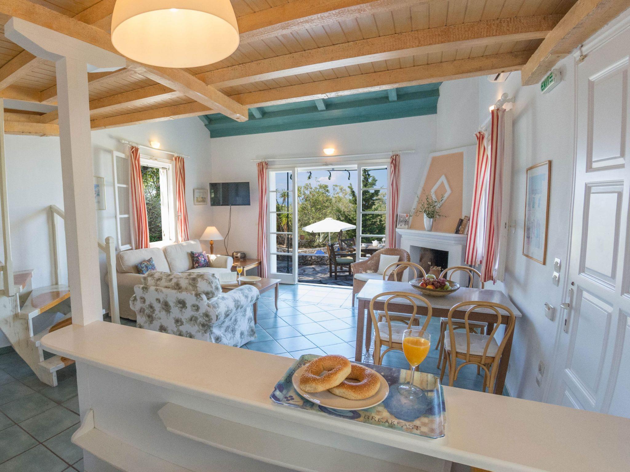 Villa sits on the highest level out of the three. It has uninterrupted sea views and the pool and a shady umbrella to sit under and relax enjoying fresh coffee with breakfast whilst overlooking this view, and listening to the birds of prey "mewing" in the background above the hills. Is perfect! At lunchtime a refreshing cool breeze arrives and dies down just as the sun is about to set.