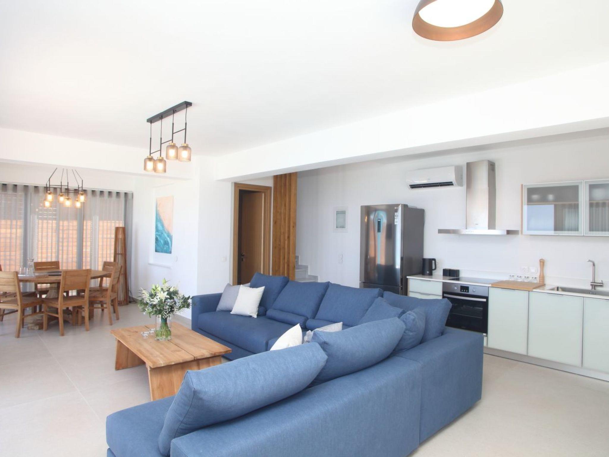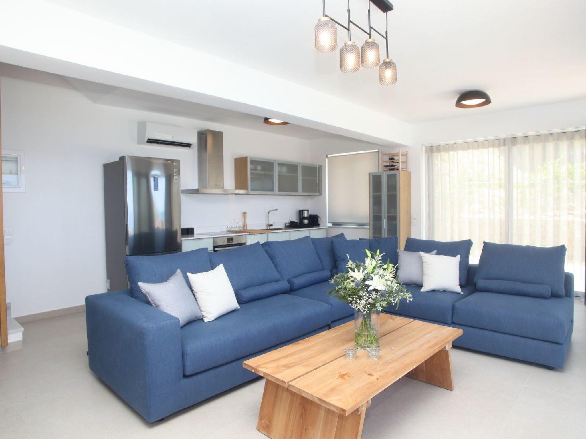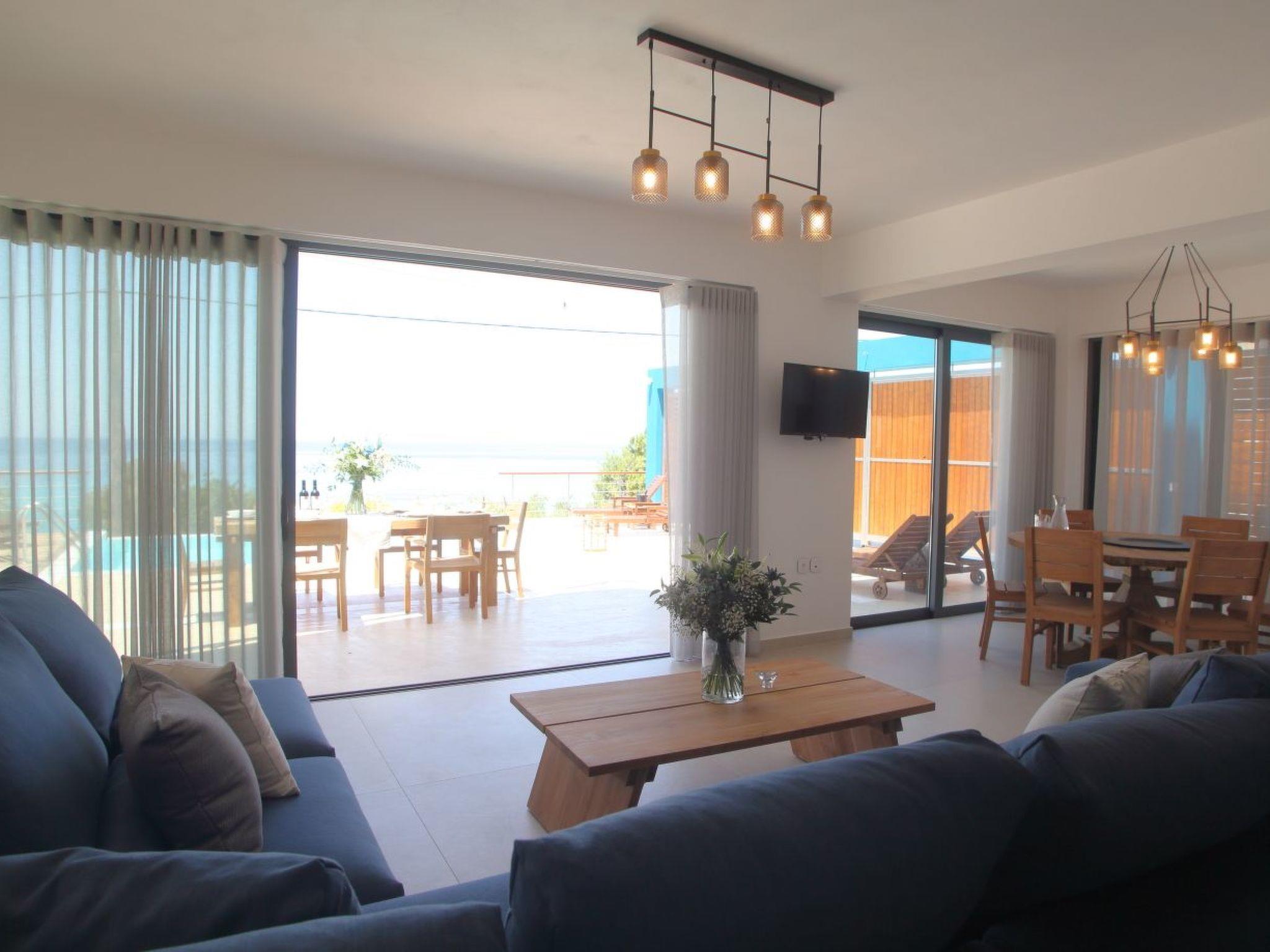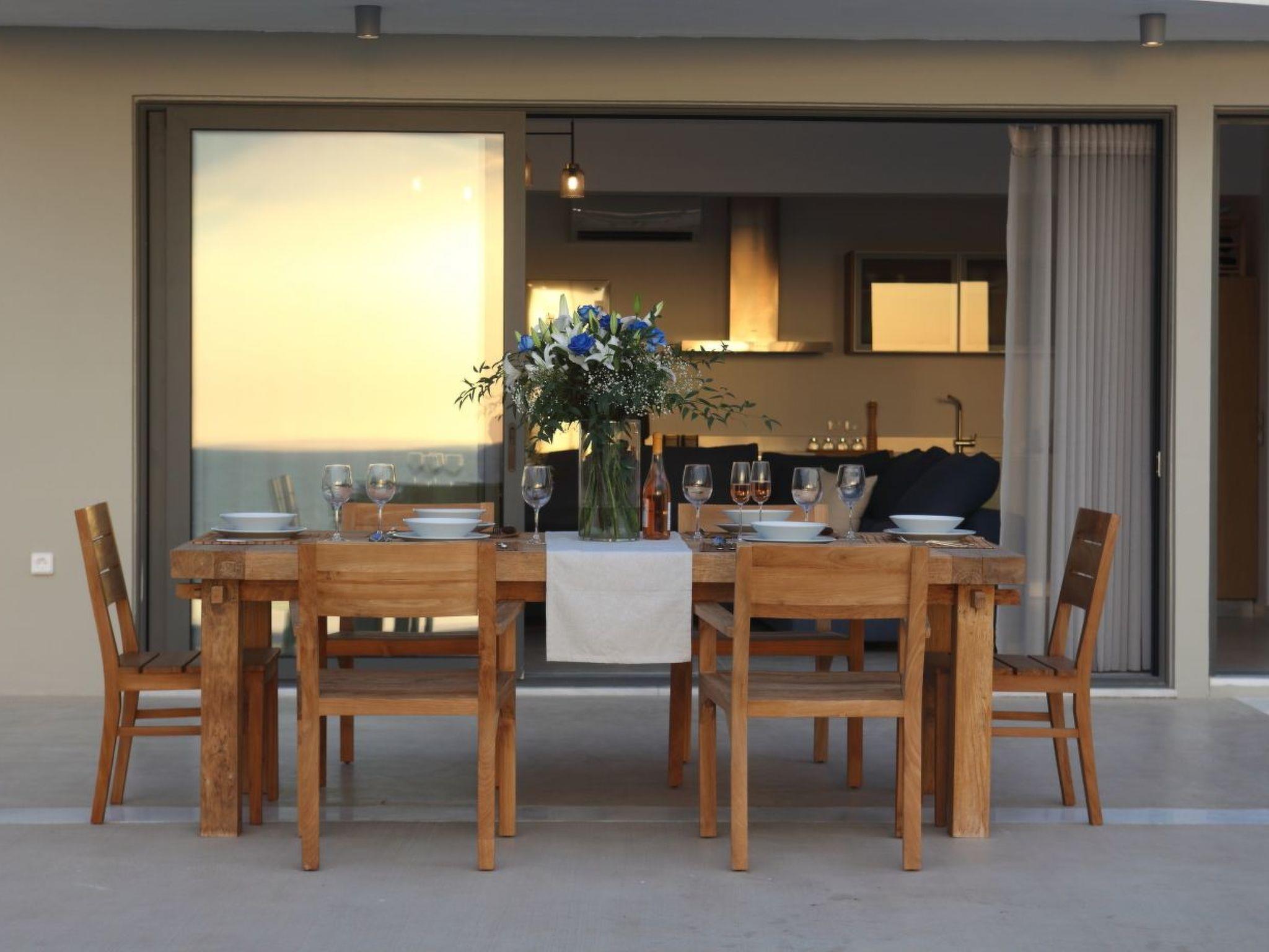 With is contemporary interior and highly practical and generously proportioned exterior space ,this villa is aesthetically pleasing to the eye from whatever angle you favor your holiday choice from. It has been carefully designed as a spacious and comfortable holiday home leaving guests feeling refreshed by its bright and airy design. The first thing you notice when you enter this fantastic home is the spacious living room decorated with high quality furniture and large glass windows around that allow you to enjoy the infinite blue of the sea and the beauty of the Greek sky. Also on the ground floor there is a modern kitchen which leads directly off the dining area and is fully equipped with everything a comfortable home needs.