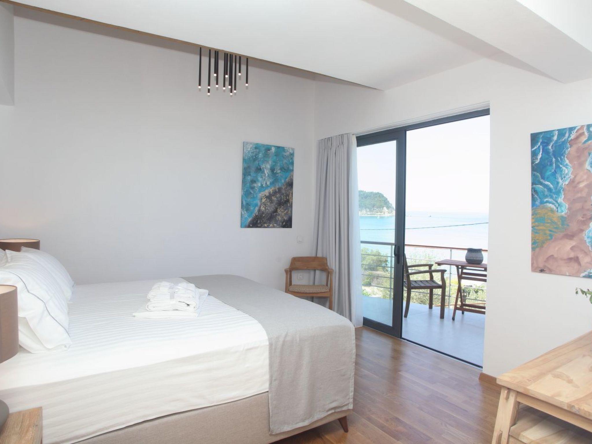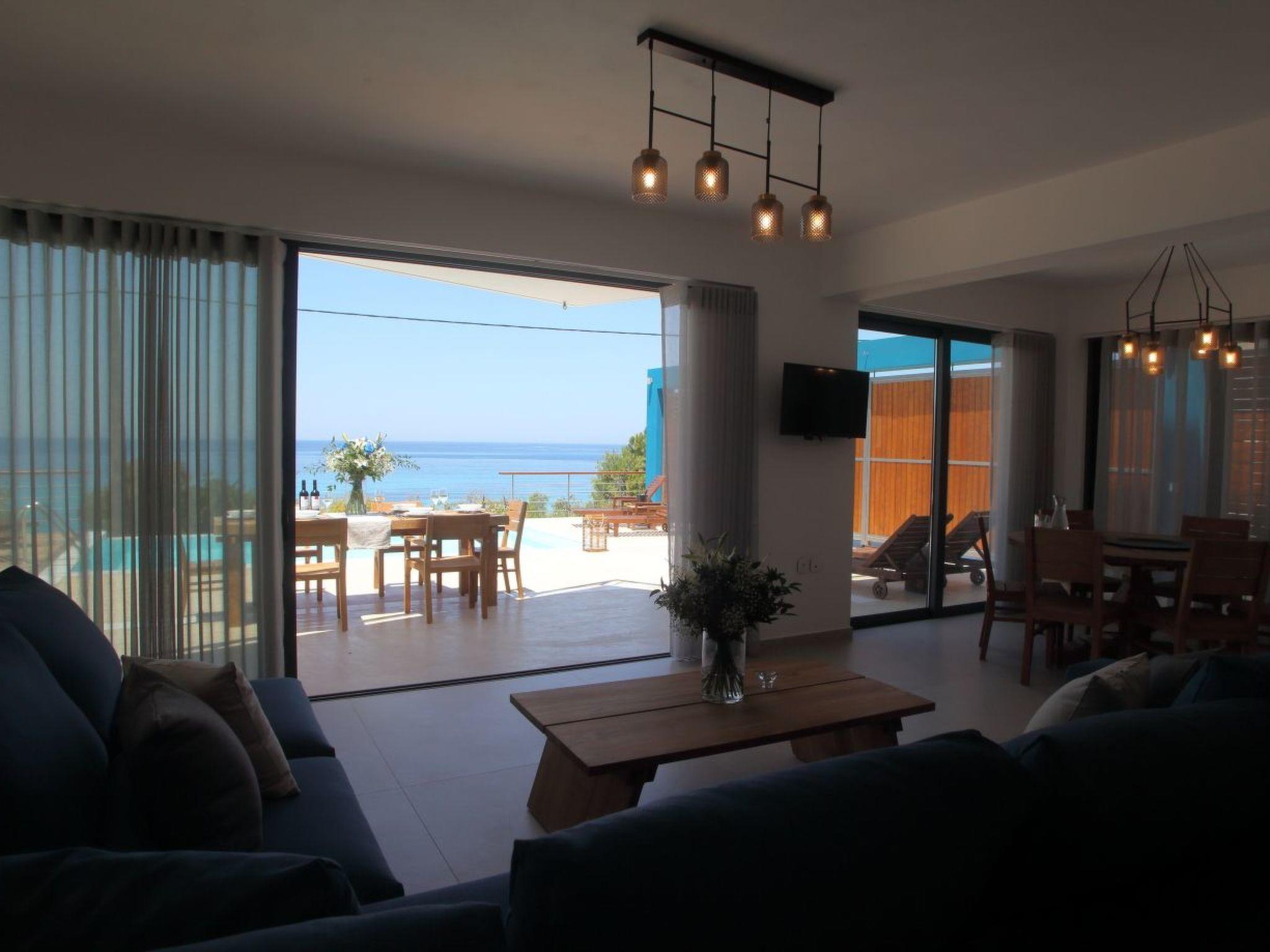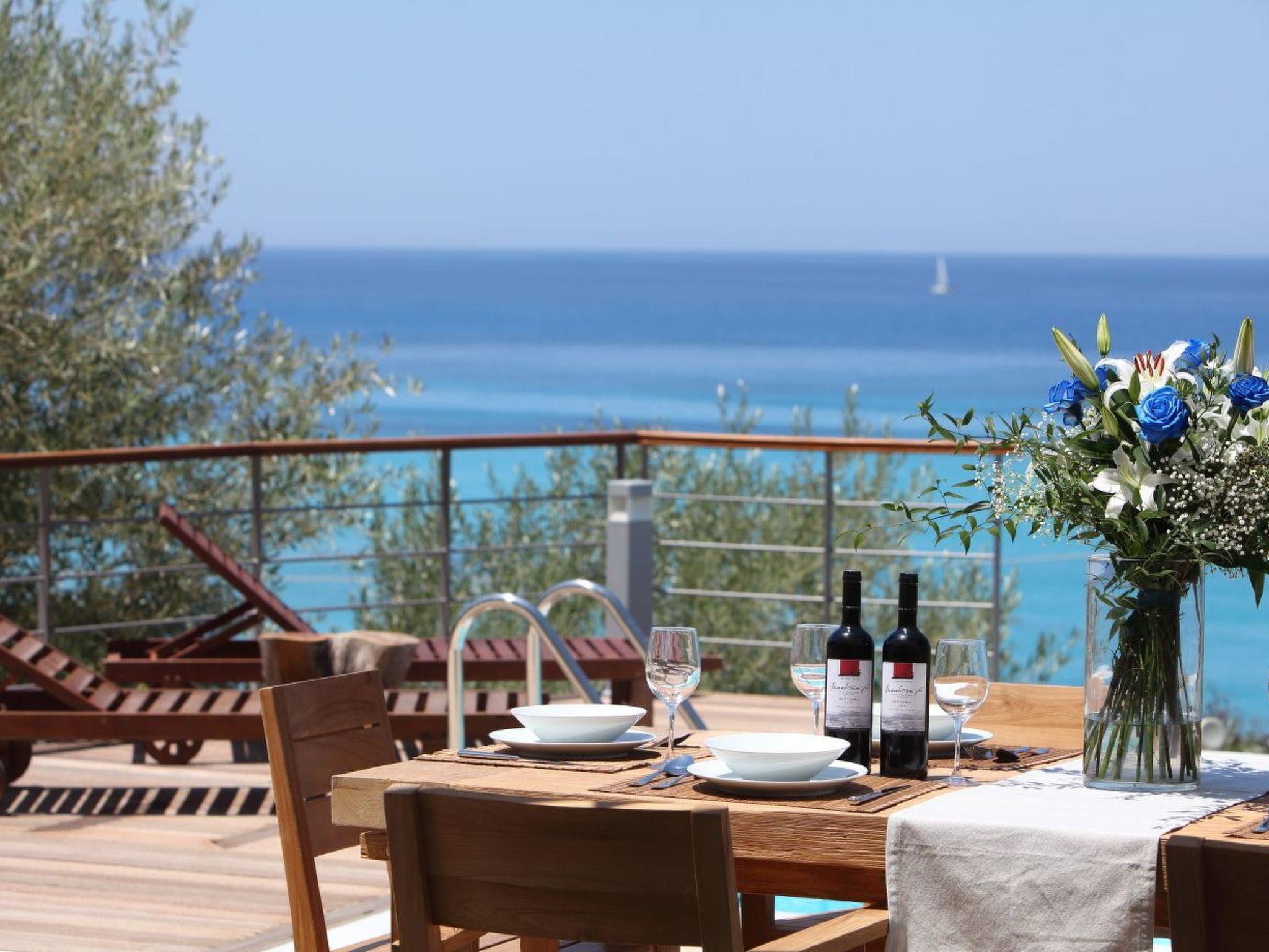 This brand new villa enjoys a privileged location, no further than 50m from the beach with its own access through a few steps and a private path. When you enter this fantastic house on the ground floor, there is a spacious living room and kitchen decorated with high quality furniture and glass sliding doors around that allow you to enjoy the infinite blue of the sea and the beauty of the Greek sky.On the upper floors you will find three king size modern en-suite bedrooms , from which you can enjoy the sea view through the large glass windows.Inside the villa compliments a fully equipped kitchen area, including oven, fridge-freezer, dishwasher, kettle, coffee-maker, and all kitchen utensils, so you can enjoy cooking with a view, along with washing machine, Wi-Fi, bed linen, bath and pool towels and many additional features to complete your holiday experience.Being on a slightly elevated level, 50m from the sea, the house offers superb views across the water whether from the comfortable armchairs on the terrace or one of the sunbeds on the decking of the swimming pool or even inside the infinity swimming poolThe bed positioning and room layout allows you to take in views of the Mediterranean and its beautiful sunsets from wherever you are.During the day, big balconies help you enjoy the sublime lines of waves and during the night, the illuminated coastline from Agios Nikitas village stretching like a painting in front of you. ?he lighted infinity pool adds the finishing touch to a perfect picture.Shops, restaurants, bars and supermarkets can be found at the village of Agios Nikitas in a distance of 1 km.