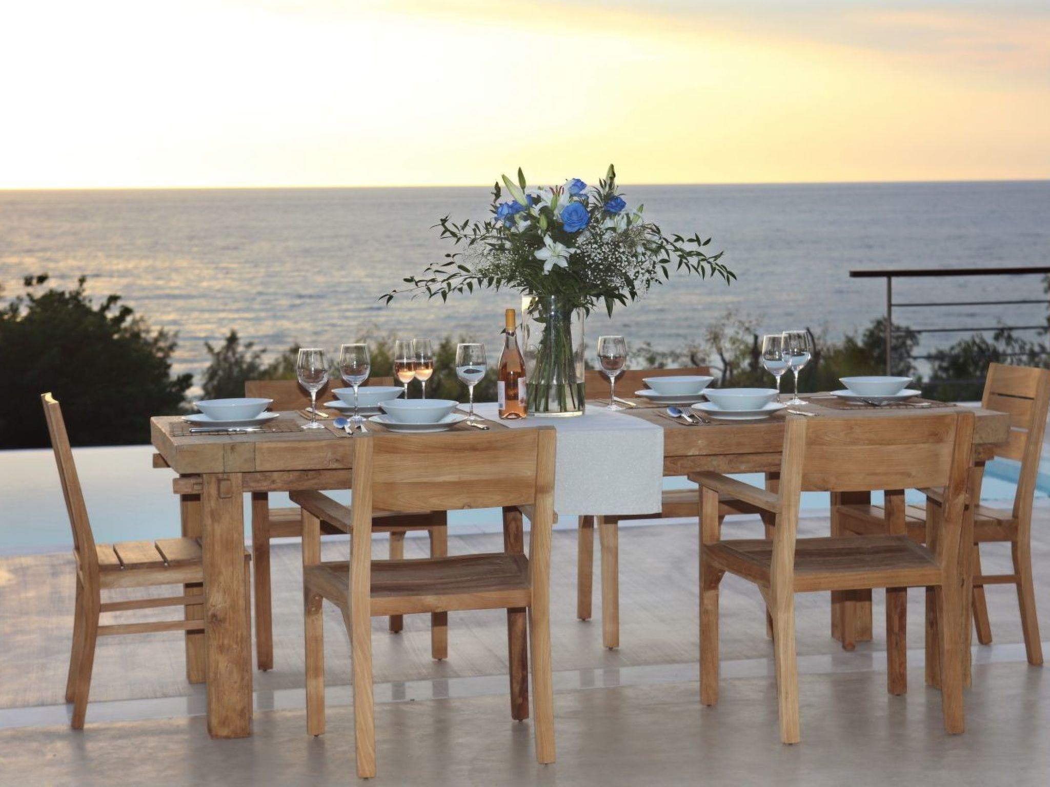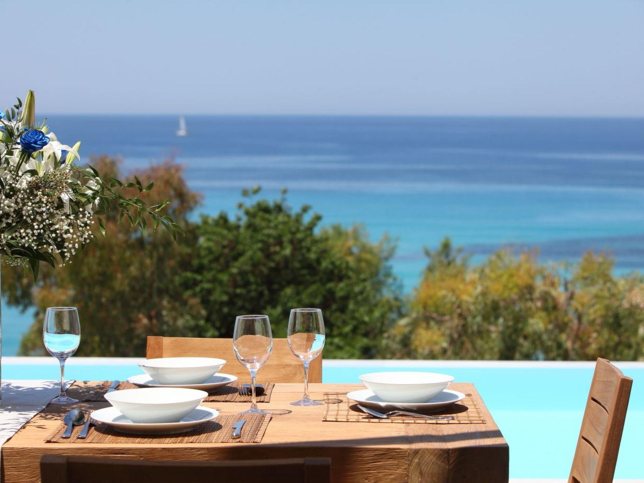 A west facing terrace is accessible from the living room. It is furnished with armchairs, an 8-seat dining table and sun loungers, chairs and gas BBQ where you can really enjoy your holiday, soaking up the best Mediterranean Sunsets.The 9 x 5 cutting edge infinity pool is right in front of the terrace. Guests will spend long lazy afternoons lying in the sun, enjoying a refreshing drink and taking in the gorgeous view across the sea to Agios Nikitas village.