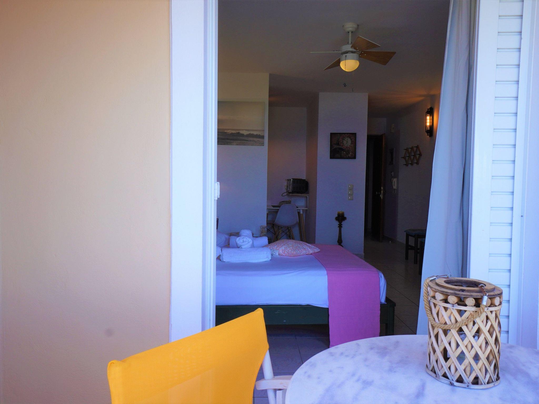 Modern studio apartment in Zakynthos with a private balcony offering beautiful sea views It is located in Holy Trinity, a residential suburb of Zakynthos town. It is in an ideal location just a very short walk from the beach. The central square of Zakynthos is 500 metres away and the port only about 1.5 km. The nearest airport is Zakynthos International "Dionysios Solomos" Airport, approximately 5 km away.