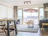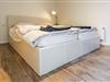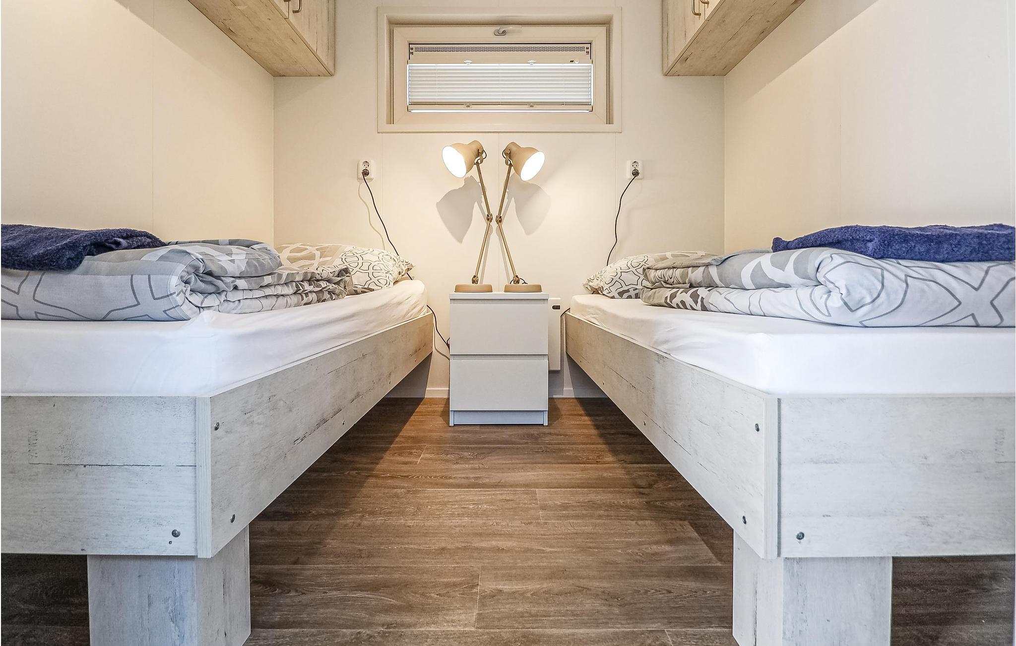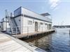 Interiøret er friskt og lyst, stuen med udsigt over havnen er rummelig med åbent køkken. Det flydende hus har også to soveværelser og et badeværelse med bruser.
