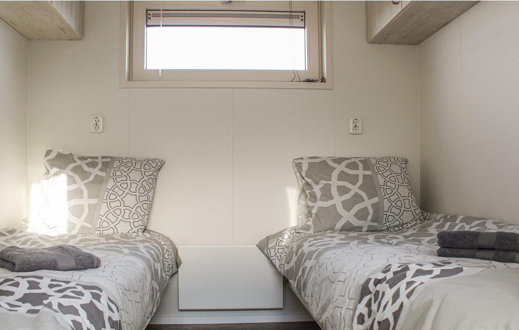 Stuen er lys og moderne indrettet. Her er store vinduer på alle sider, så her kan I nyde udsigten over vandet. Det åbne køkken er komplet udstyret. Her er to soveværelser, et med dobbeltseng, og et med to enkeltsenge. I badeværelset er der toilet, vaskekumme og brusebad. I kan leje vandsportsudstyr i bådehavnens reception. Bla. SUP-boards og kanoer. I kan også tage forskellige kurser. I bor i grænseområdet mellem Nord- og Sydholland kun 20 minutter i bil fra kysten. Det tager ca. en halv time at køre til Haarlem og Amsterdam.