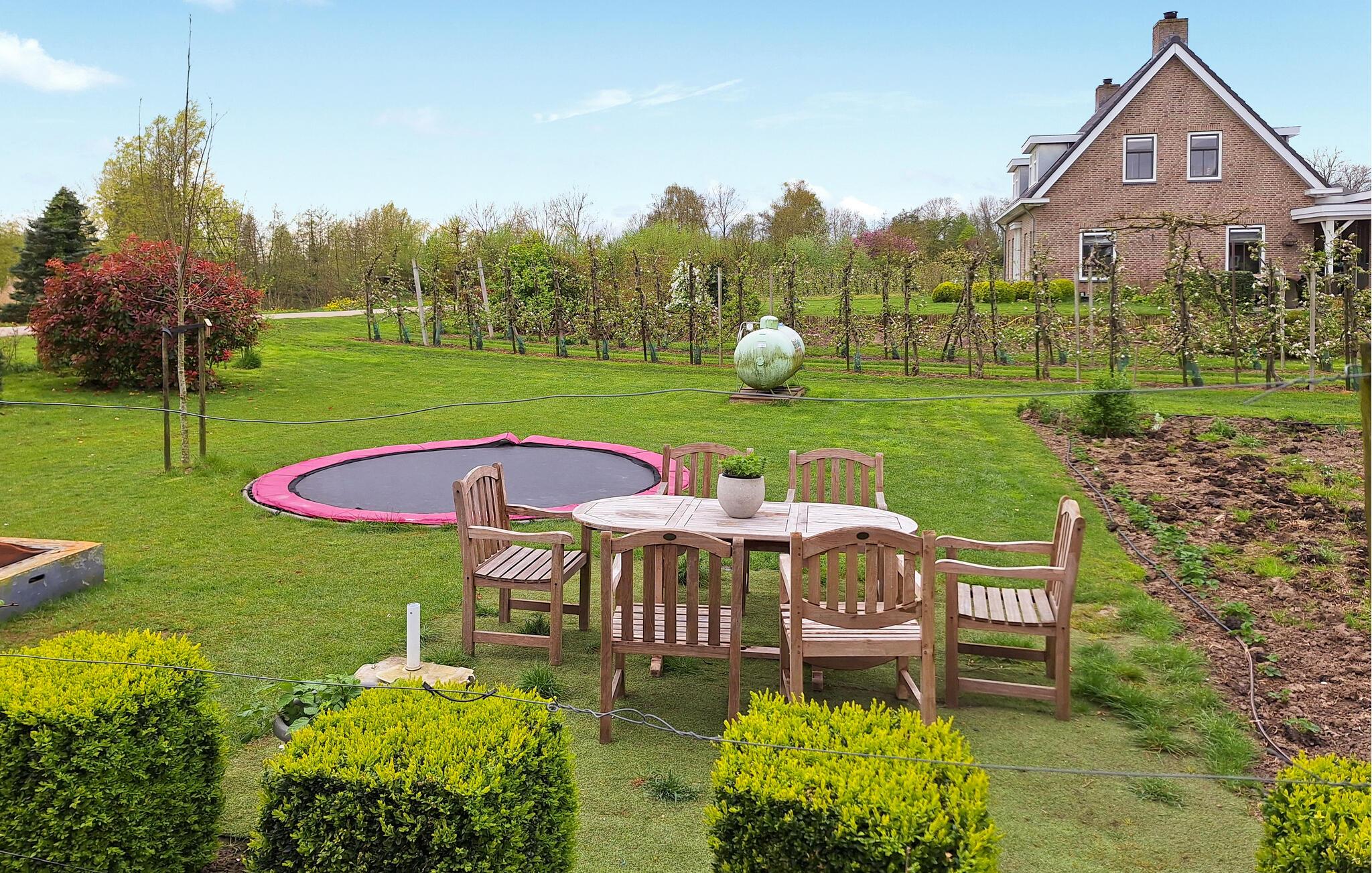 Ejendommen blev renoveret i 2021 og ligger midt i en æble- og pærehave på en gård. Selv store grupper af gæster finder plads nok her til en afslappende og varieret ferie i den dejlige, fredfyldte hollandske natur.