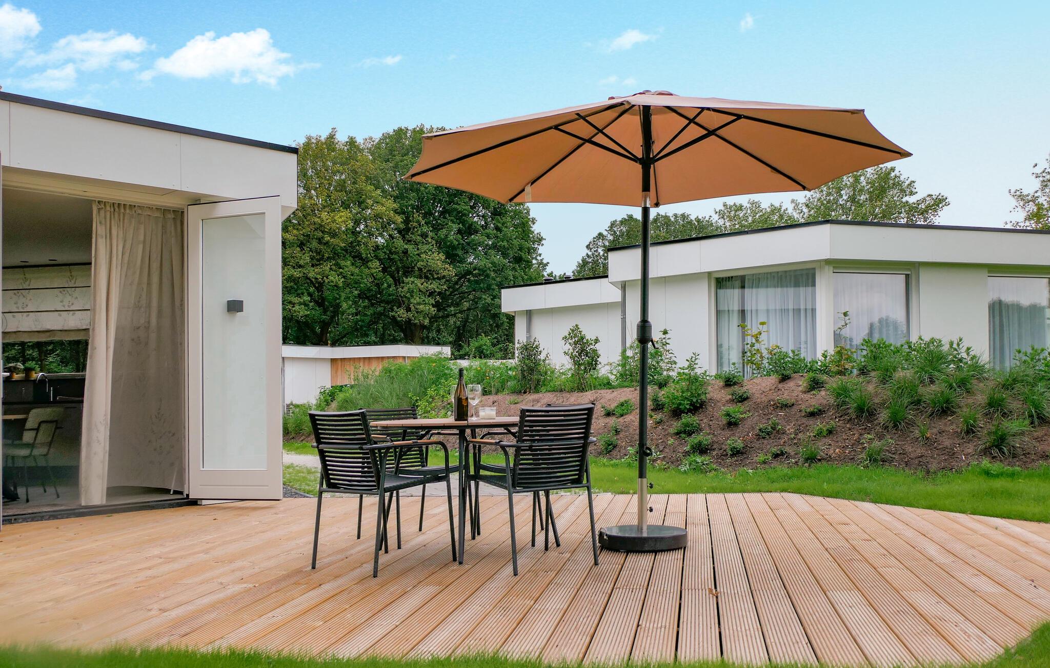 Træd ud på jeres skønne terrasse, der er forbundet med den omkringliggende natur, og start dagen med en dejlig morgenmad med udsigt til det grønne. Takket være den gennemtænkte indretning giver hvert feriehus i denne lille residens masser af privatliv i dette uberørte hjørne af Nederlandene. Lad jeres børn lege i naturen, og nyd et glas vin under stjernehimlen om aftenen. I området finder I desuden faciliteter til dagligdags behov, en stor sportsplads samt en separat legeplads for hunde.
