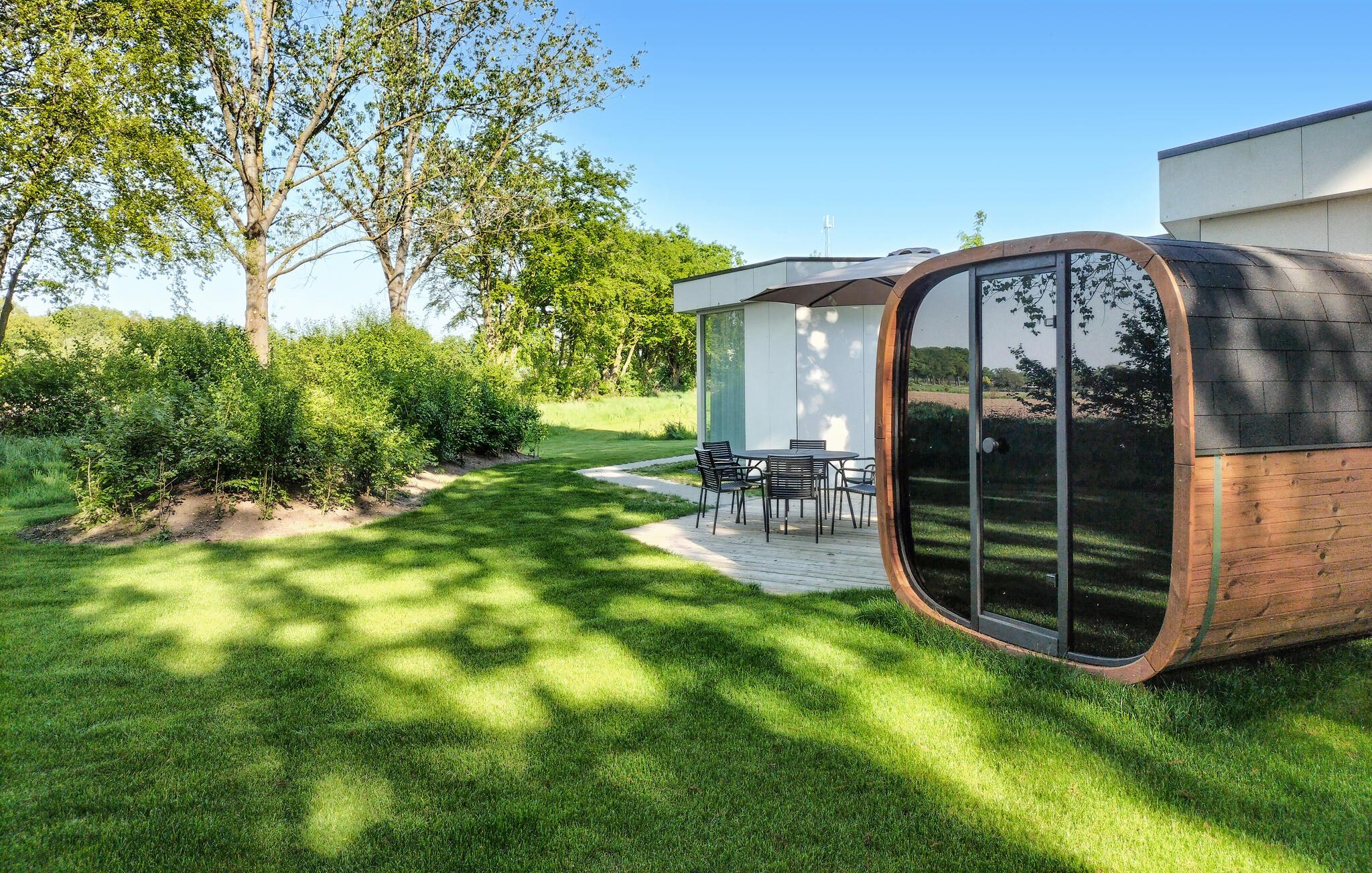 Træd ud på jeres skønne terrasse, der er forbundet med den omkringliggende natur, og start dagen med en dejlig morgenmad med udsigt til det grønne. Takket være den gennemtænkte indretning giver hvert feriehus i denne lille residens masser af privatliv i dette uberørte hjørne af Nederlandene. Lad jeres børn lege i naturen, og nyd et glas vin under stjernehimlen om aftenen. I området finder I desuden faciliteter til dagligdags behov, en stor sportsplads samt en separat legeplads for hunde.
