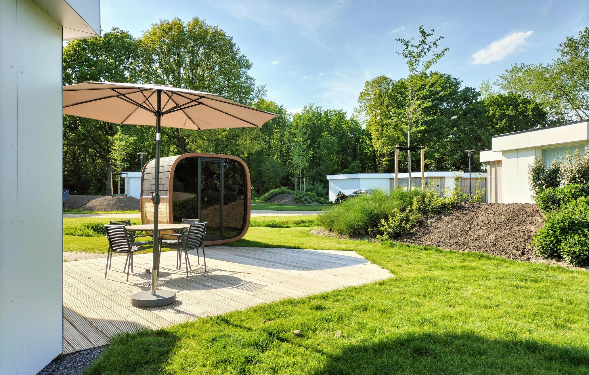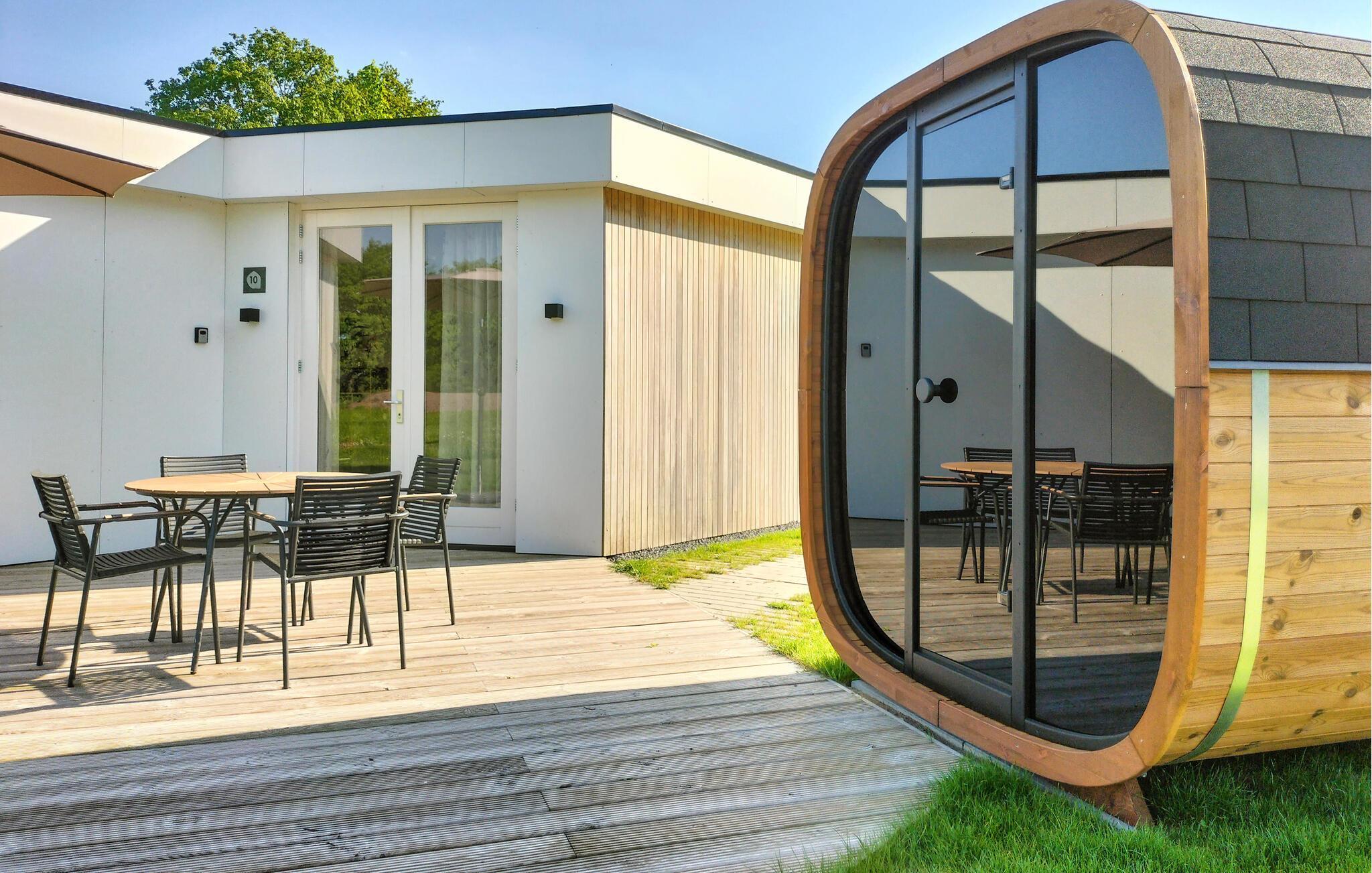 Træd ud på jeres skønne terrasse, som er direkte forbundet med den omkringliggende natur, og nyd en lang morgenmad med udsigt til det grønne. Takket være den gennemtænkte indretning tilbyder hvert feriehus i den lille bolig jer en masse privatliv i denne uberørte del af Holland. Lad jeres børn opleve naturen på en legende måde og forkæl jer selv med et glas vin under stjernerne om aftenen. Oplev også komplekset, som byder på komfort med hverdagsfaciliteter, en stor sportsplads og en separat legeplads for hunde.
