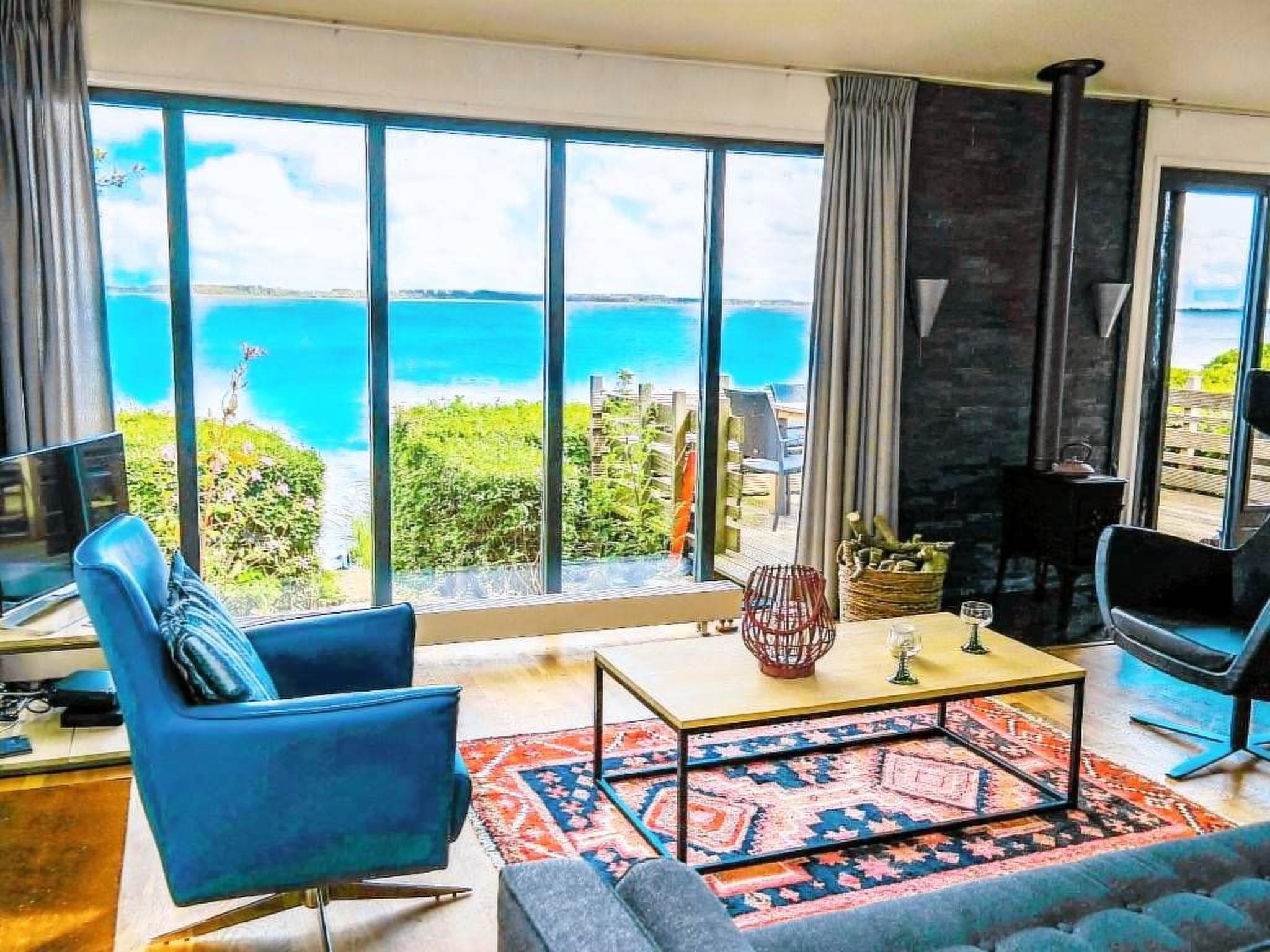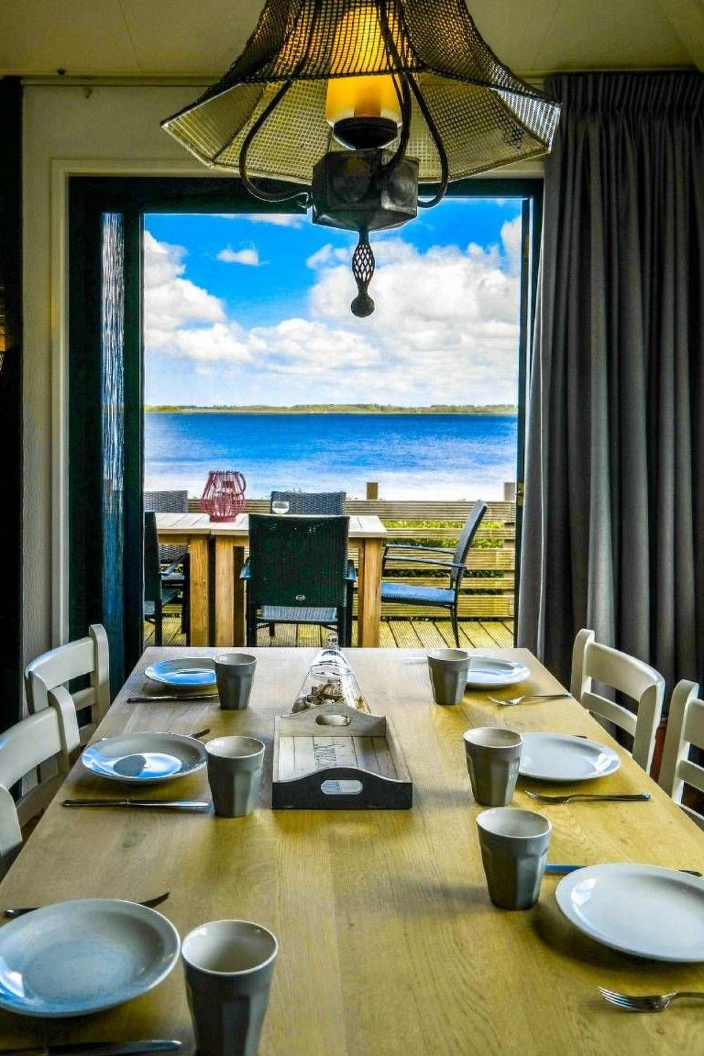 Chalet Heleen is situated directly on the shore of the open Lauwersmeer with an indescribably beautiful view of the sea and the National Park and has a fishing spot and swimming access, 2 terraces, large panoramic windows, wood-burning stove and central heating,