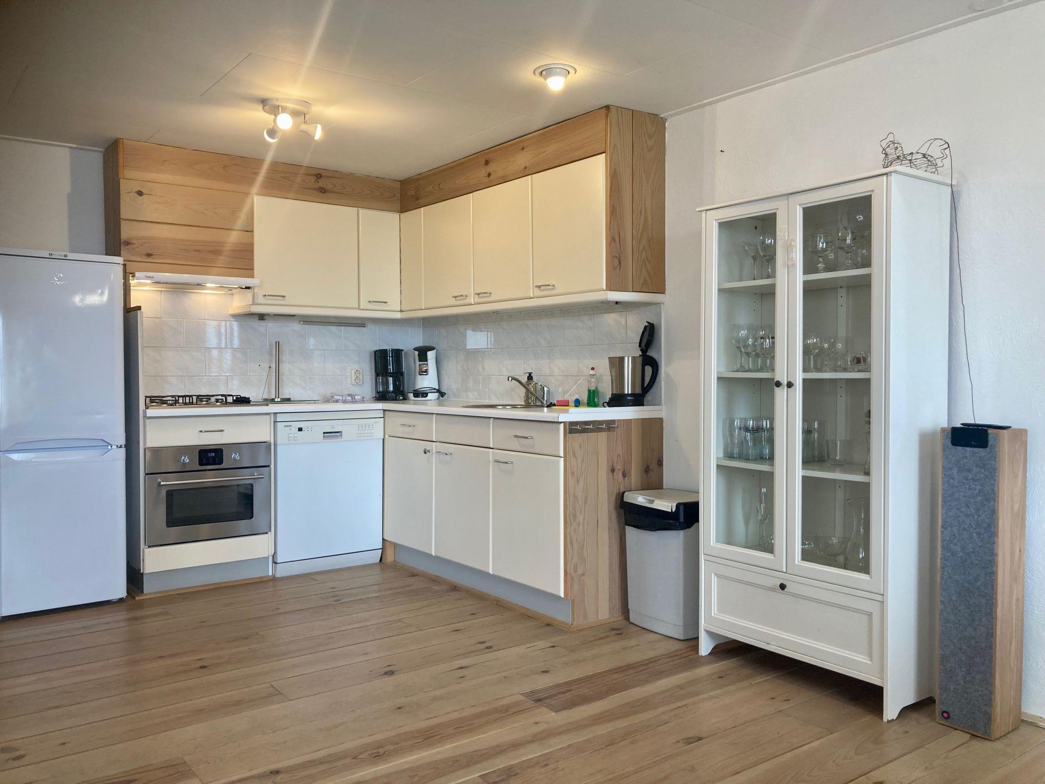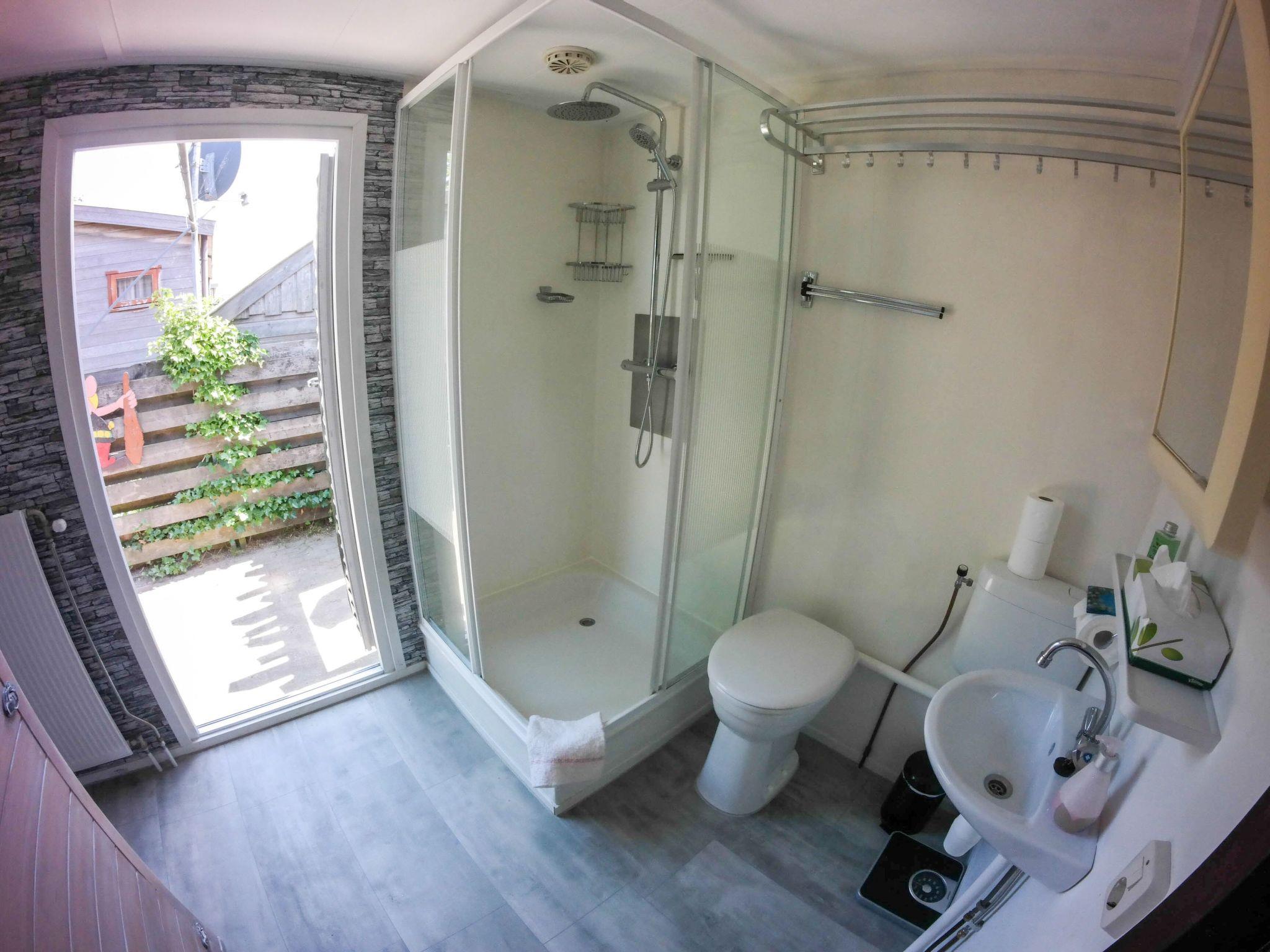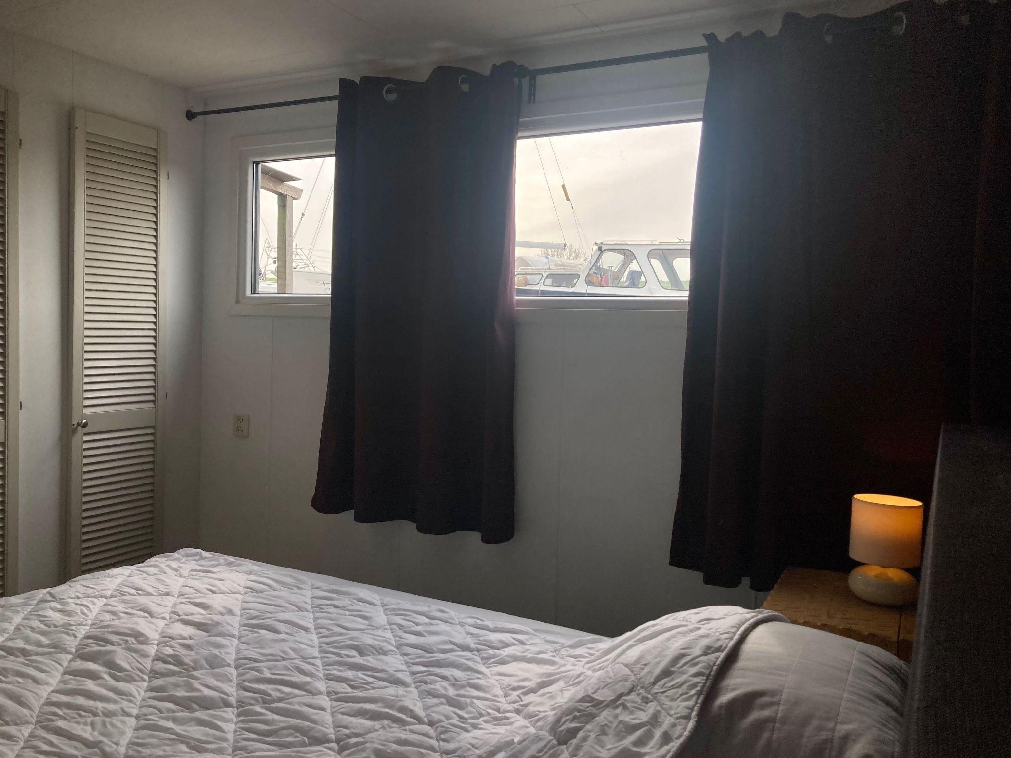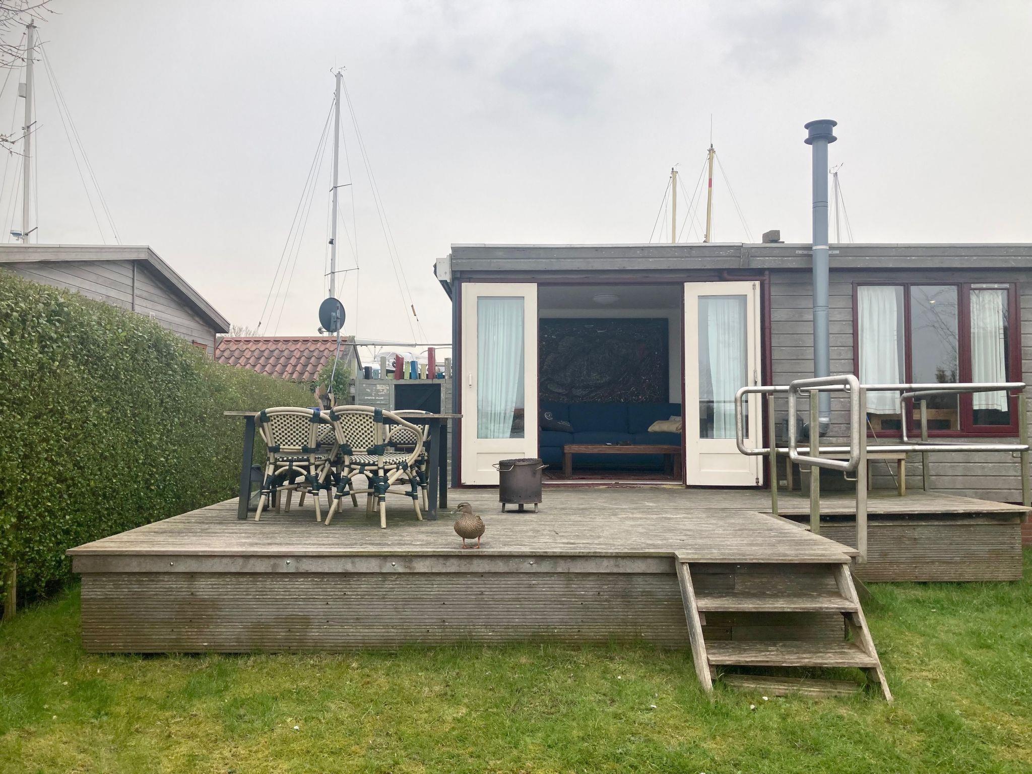 Chalet Valentina can be reached at ground level via two steps and is suitable for up to 4 people! From the living room, which has a stylish gas stove, you can look directly onto the water. The kitchen is fully equipped with oven/microwave and dishwasher. The house has its own 2 person infrared sauna. As well as a washing machine. One of the two bedrooms has a large window facing the dyke. The property is fenced to the water side and can only be seen from the water side.