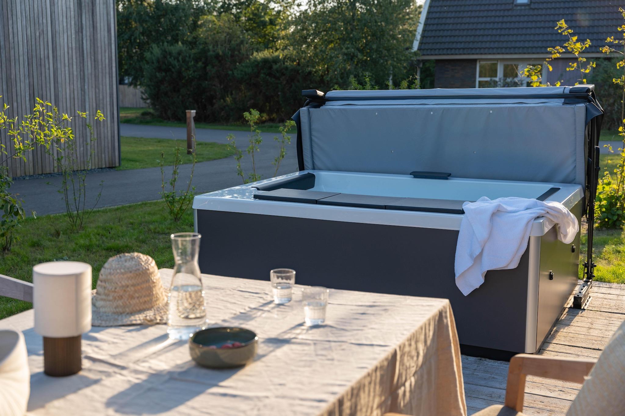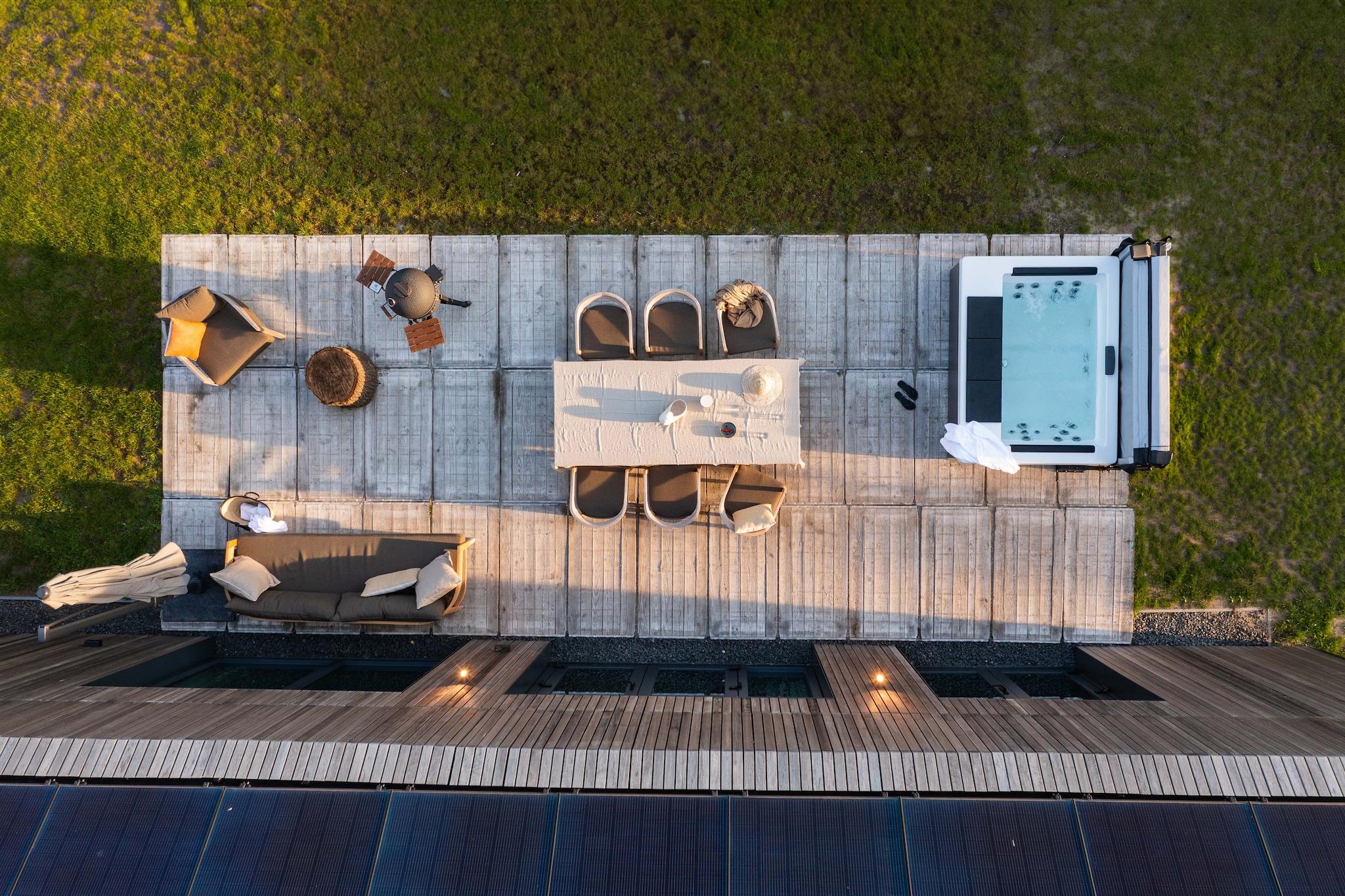 Stueetage: (entre, Stue(Fjernsyn), åbent køkken(cooker, komfur(induktion), kaffemaskine(kopper), combi-mikroovn, opvaskemaskine , køle-fryseskab), Soveværelse med badeværelse(dobbeltseng, bruser, håndvask, toilet, føntørrer)) På 1. etage: (soveværelse(dobbeltseng), Soveværelse med badeværelse(dobbeltseng, bruser, håndvask, toilet, føntørrer), badeværelse(bruser, håndvask, toilet), Repos) trådløst musiksystem, tørretumbler, Bubble bath(privat, udendørs), sauna, vaskemaskine, varme(gennem aircondition), klimaanlæg, terrasse, have, havemøbler, grill, swimmingpool(deles med andre gæster), loungemøbler, Ladestation til el-biler