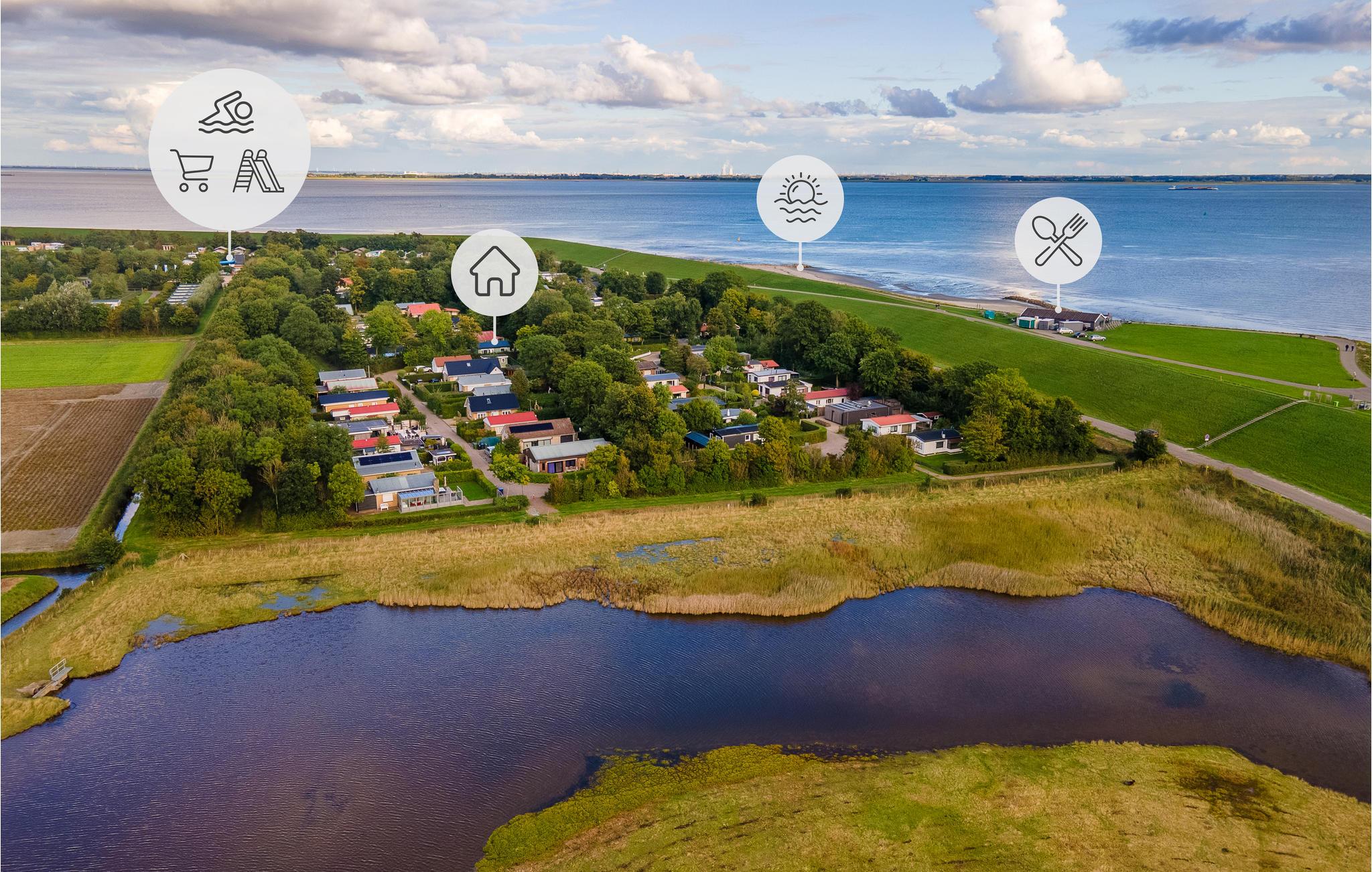 Huset har en rolig beliggenhed, omgivet af natur, i ferieparken Scheldeoord. Efter en kort gåtur kommer I til den tilstødende feriepark med mange faciliteter som supermarked og restaurant. Kort forefindes i sommerhuset, så hele familien gratis kan benytte ferieparkens faciliteter. I parken kan børnene boltre sig på de forskellige legepladser og hygge sig på hoppeborgen. Den opvarmede udendørspool med vandrutsjebane og separat børnepool med legeredskaber er åben i sommermånederne. Det er også muligt at reservere tennisbanen gratis. I skoleferierne kan børn deltage i aktiviteter arrangeret af animationsholdet. Fra feriehuset kan I nemt nå stranden ved Westerschelde på få minutter. Der er et brasserie på stranden til en drink eller et lækkert måltid. I dårligt vejr byder indendørspoolen på en masse badesjov. Børn kan lege på den lille indendørs legeplads. Den tilstødende feriepark og de nævnte faciliteter er åbne fra slutningen af ??marts til slutningen af ??oktober.