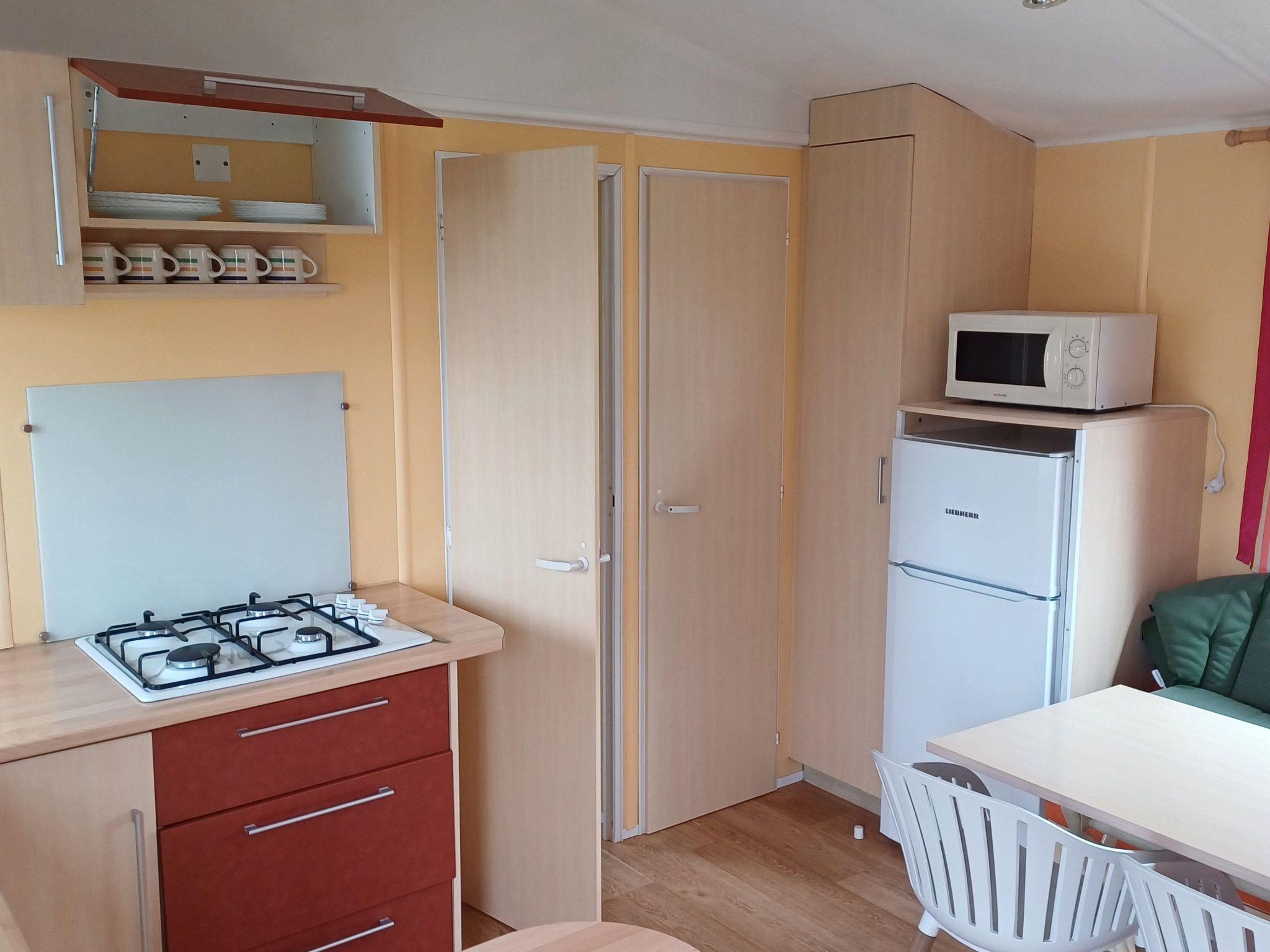 Outside you'll find a tiled terrace with parasol and garden furniture and although parking is available 100 m from the accommodation, the campsite itself offers an excellent selection of facilities. These include two restaurants open all season, a supermarket, washing machines and dryers. For relaxation, there are also swimming pools, playing fields and sports facilities such as tennis courts and a football pitch. The beach and a variety of play and sunbathing areas guarantee outdoor fun for everyone.