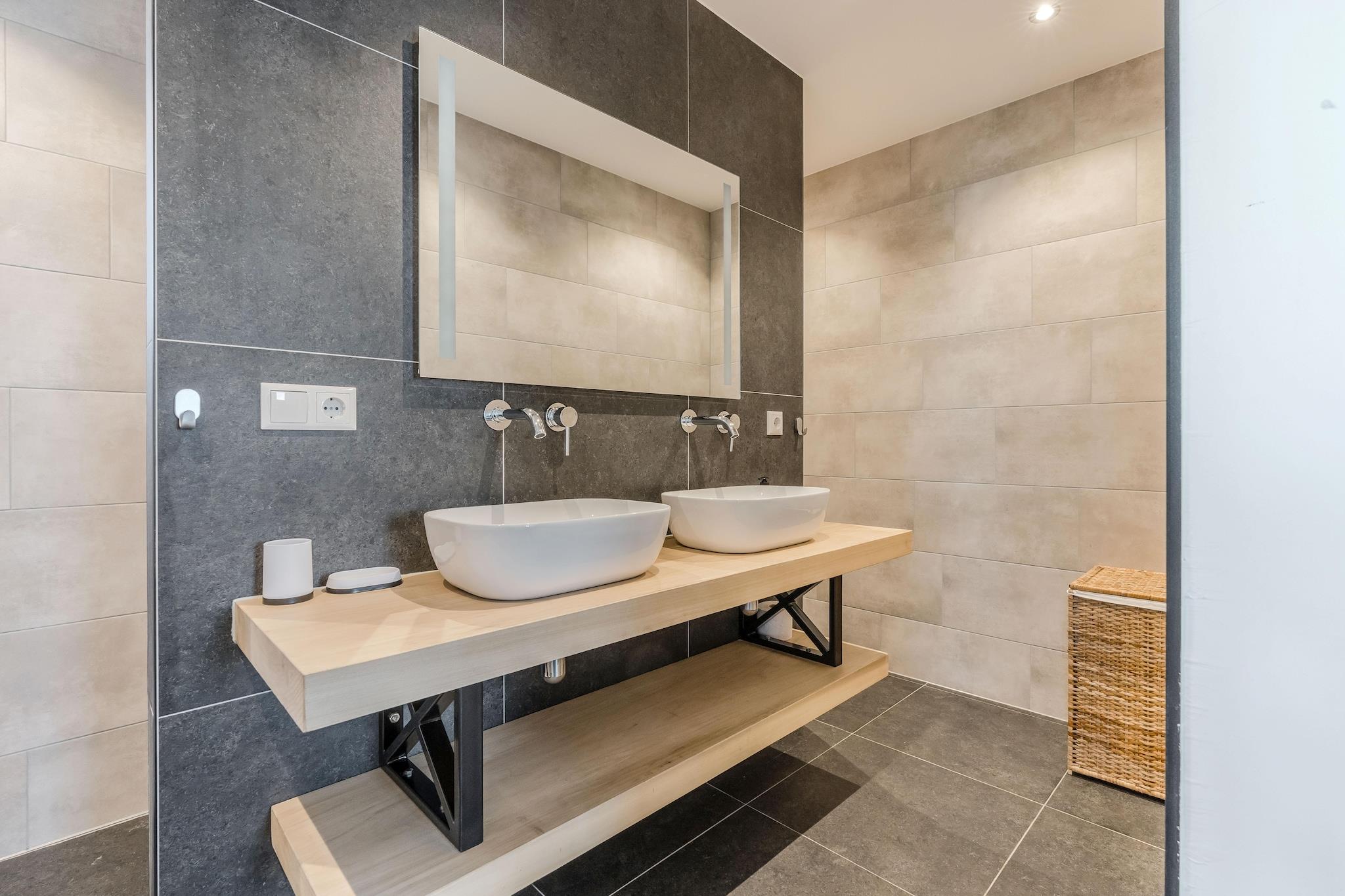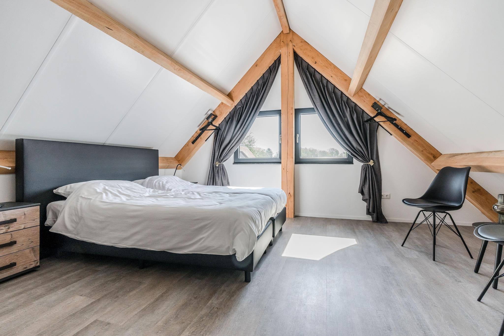 Gemt væk i det frodige grønne Baarle-Nassau, blander dette stilfulde feriehus moderne komfort med rustik charme. Denne villa er designet med træ, sten og glas - og toppet med et stråtag - en visuel fornøjelse. Det skyhøje loft i opholdsstuen og den ekspansive glasfacade skaber en lys, luftig atmosfære, der forbinder smukt med naturen. Med aircondition, Smart TV og højhastigheds-Wi-Fi kan du nyde alle fordelene ved en moderne livsstil pakket ind i fredfyldte omgivelser. Uanset om du tilbereder et måltid i det fuldt udstyrede køkken eller bader i badekarret efter en dag med udforskning, er dette hjem bygget til afslapning. Det tilbyder tre hyggelige soveværelser, inklusive et luksuriøst en-suite på øverste etage for ekstra privatliv. I stueetagen deler to soveværelser et rummeligt badeværelse med både badekar og bruser. Tøjvask er også dækket, med din egen vaskemaskine og tørretumbler for ultimativ bekvemmelighed. Træd ud i din smukt anlagte have med udsigt over en fredelig dam, perfekt til al fresco-morgen eller golden hour-samtaler. Beliggende nær grænsen mellem Belgien og Holland, er du tæt på charmerende lokale spisesteder, caféer og bagerier i Baarle-Nassau og Baarle-Hertog. Bemærk venligst: kæledyr er ikke tilladt, og åben ild grill er forbudt på grund af de nuværende tørkeforhold. Ideel til par eller familier, der søger stil, ro og tilgængelighed.