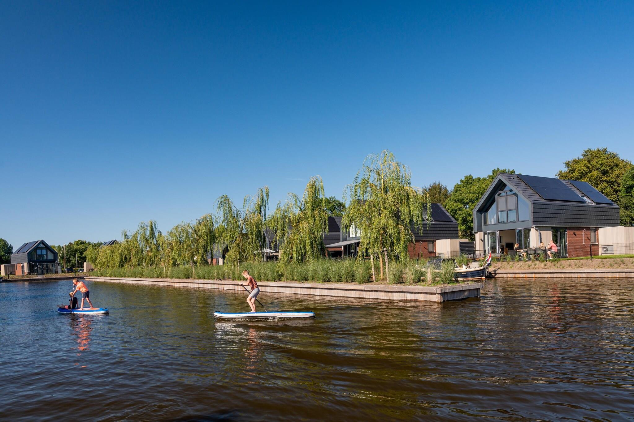 Denne luksusvilla med egen badebro i den frisiske by Balk er meget velegnet til ferie med familien. Fra villaen har du direkte forbindelse til den frisiske Slotermeer. Vandvillaen har en rummelig stue med et komfortabelt opholdsområde, et smart-tv og et rummeligt spisebord. Møblerne er meget moderne. Villaen har et soveværelse nedenunder med eget badeværelse. Ovenpå er der 3 soveværelser, 1 med eget badeværelse og separat badeværelse. Så en masse luksus og privatliv. Balk, der ligger i det frisiske sødistrikt, er kendetegnet ved dets historiske centrum beliggende ved Luts-floden, en del af Ellevebyruten. Du kan shoppe meget langs kanalen eller sidde på en af de hyggelige terrasser. De unikke landsbyer langs Elfstedentocht-ruten er også bestemt et besøg værd. Det åbne køkken er en del af stuen og er udstyret med luksus hvidevarer. Gennem de franske døre i stuen kommer du nemt ud til haven med en dejlig terrasse på vandet.