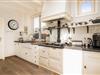 Den stilfulde stue har farvede glasruder, masser af lys, et stort fladskærms-tv, pejs, spisebord til otte personer, et dejligt opholdsområde og forbindelsesdør til køkkenet samt dobbeltdøre til terrassen. Rummet her er virkelig hjertet i huset.
