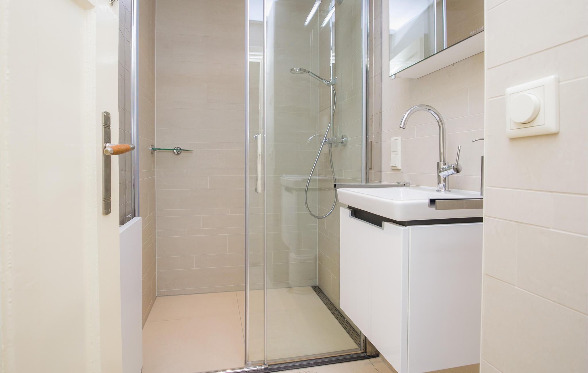 Der er to badeværelser. Det ene har brusebad og håndvask, det anden har badekar, vask, vaskemaskine og tørretumbler. Der er også et separat toilet (med bidetfunktion) på denne etage. Hvis I går en etage op, ligger der to enkeltværelser, begge med egen håndvask. I huset "t Sterntje" er sengene ikke redt op ved ankomst, men I kan vælge, om I vil leje sengelinned eller medbringe jeres eget.