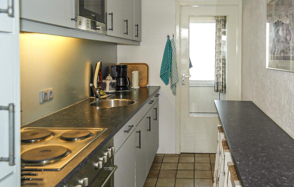 Over hele lejlighedens bredde har I en dejlig altan med havemøbler. Fra omkring kl. 13 har I masser af sol der og kan nyde en smuk solnedgang om aftenen. Den lyse stue har en dejlig opholdsstue med to sofaer og tv og et spisebord med seks stole. Der er også en sovesofa, der også kan sove to personer mere. Det separate køkken har et langt bord med stole. Badeværelset har et badekar med bruser, håndvask og toilet bag en separat dør. Der er to soveværelser på den rolige bagside af lejligheden. Et soveværelse har en dobbeltseng. Det andet soveværelse har to enkeltsenge.