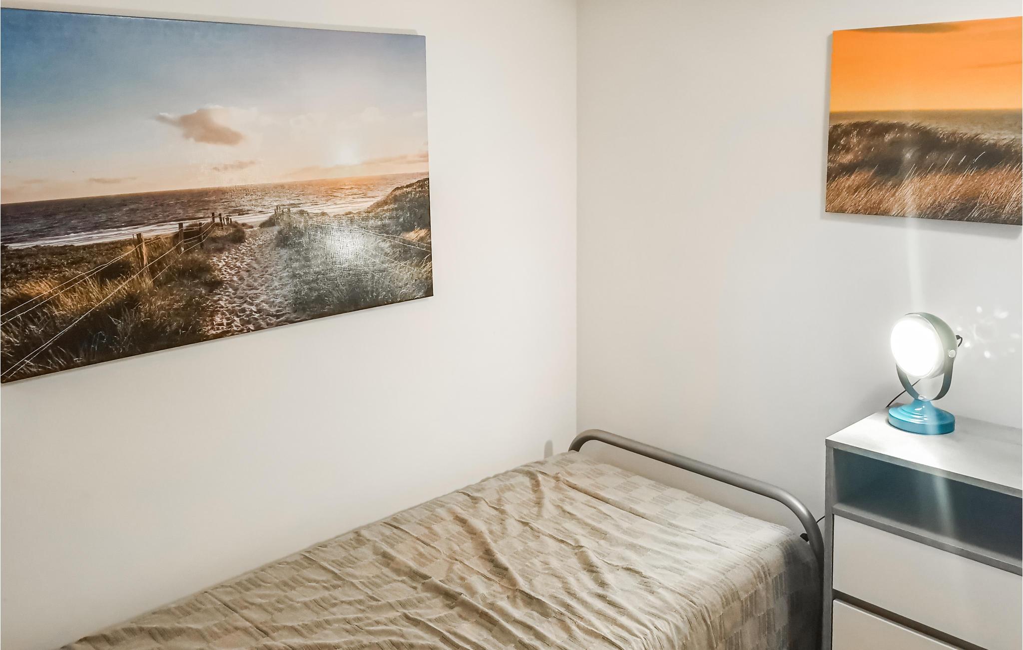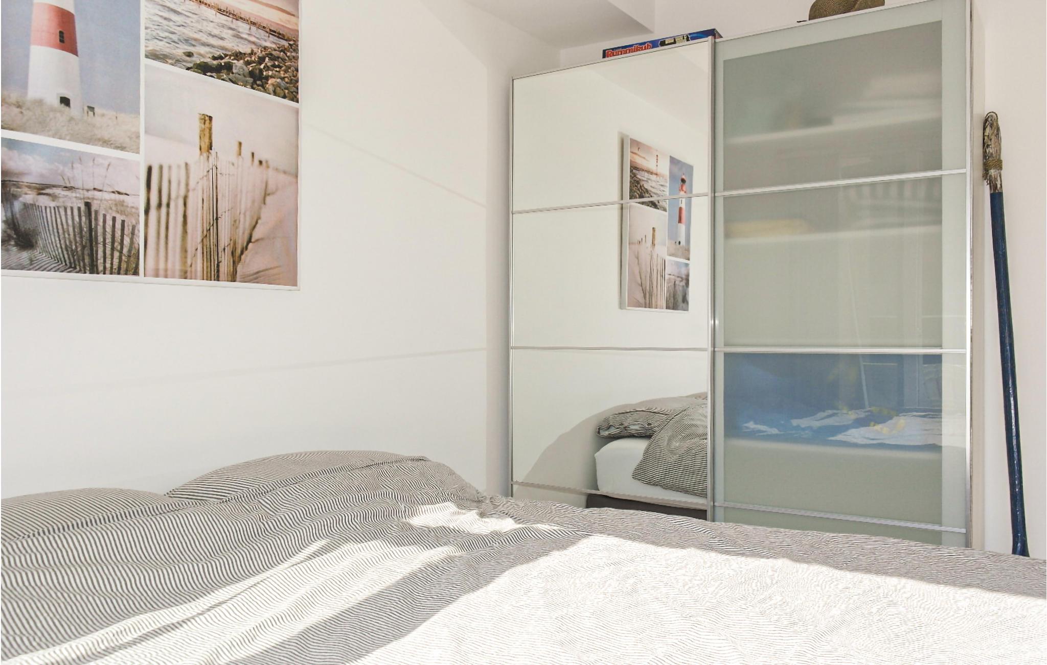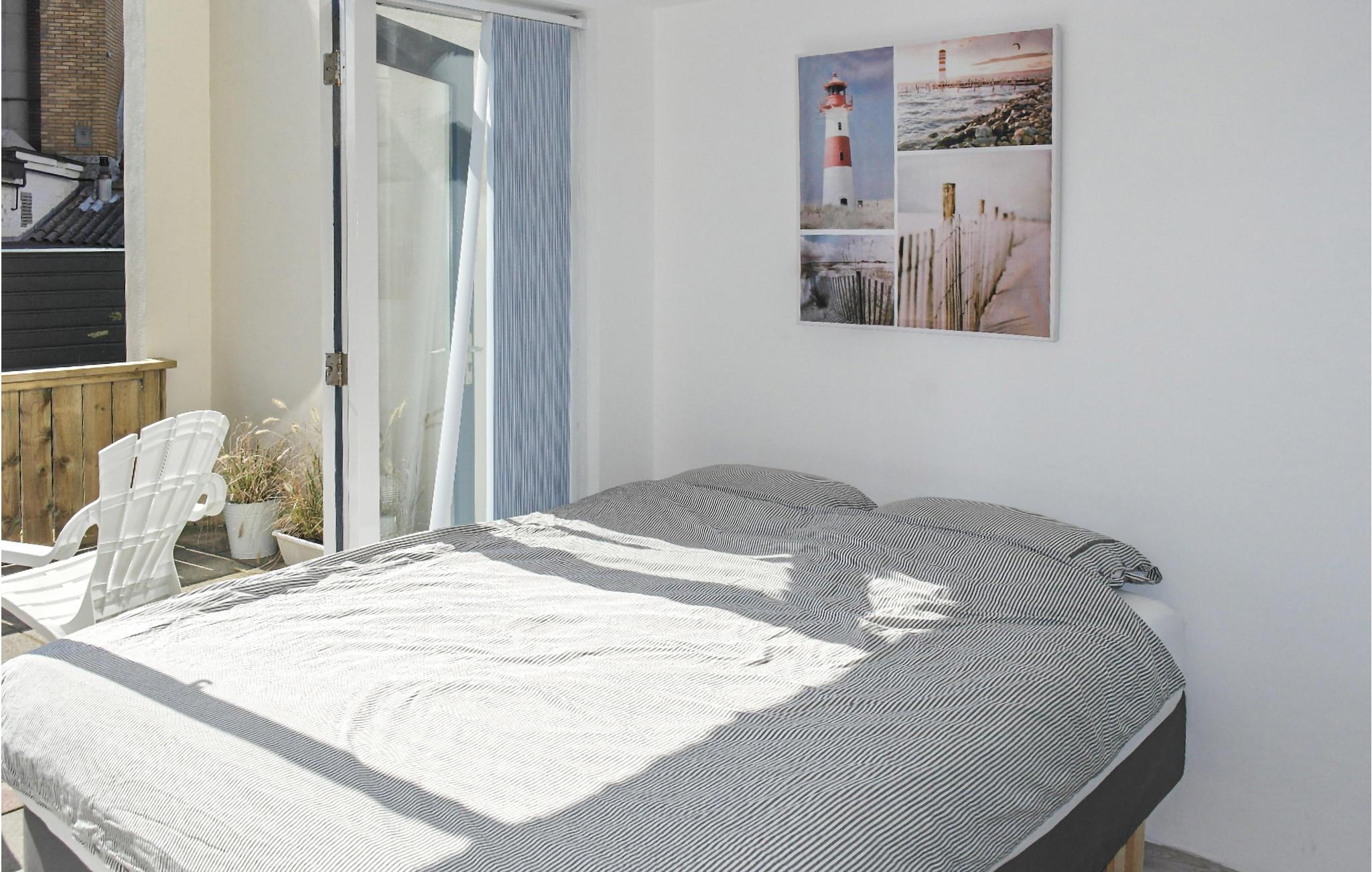 Soveværelset har en stor dobbeltseng (160x200) med et bredt tæppe, garderobe og separat adgang til terrassen. Børneværelset (intet vindue udadtil, men et vindue i døren til opholdsstuen) har en enkeltseng med udtræksseng og desuden en barneseng. Der er også en højstol fra Stokke/Trip Trap med babyindsats. Lejligheden er ideel til to personer. En tredje person kan sove i en klapseng, men døren til soveværelset kan ikke lukkes.