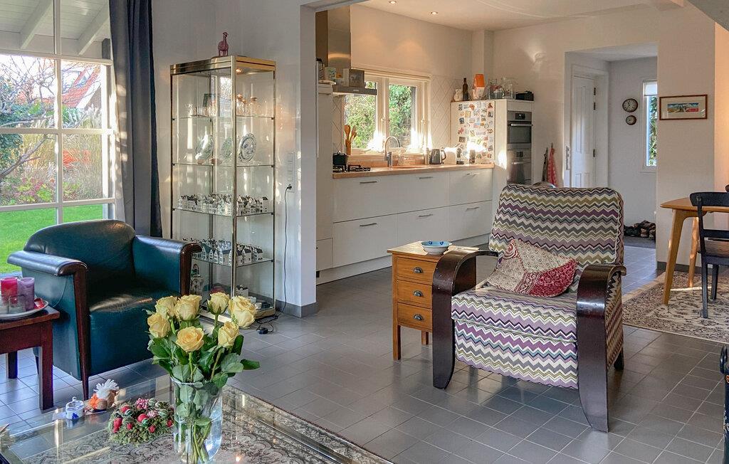 Dette hyggelige feriehus byder på en vidunderlig have med frodige blomster og planter, der garanterer fuldstændig privatliv. Den lyse opholdsstue med store vinduespartier giver jer direkte udsigt til det grønne, mens I slapper af. En trappe fører jer til første sal, hvor I kan slappe af i et behageligt soveværelse. Kombinationen af ??en hyggelig atmosfære og moderne indretning gør dette hus til et perfekt tilflugtssted.
