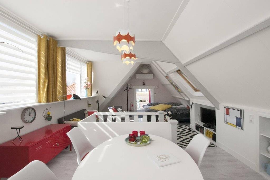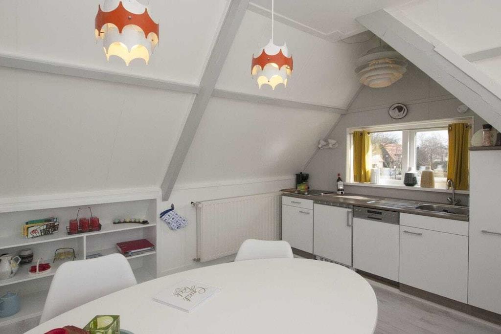 Das Apartment ist Teil der Künstlerwerkstatt des bekannte Nord-Hollandische Künstler Pauline Bakker, aber akustisch und bautechnisch davon völlig getrennt. Genügend Privatsphäre. Das Wohn/schlafzimmer ist intim, luxuriös und geschmackvoll mit niederländischem und dänischen Design eingerichtet. Weitere Details: Klimaanlage, Digital-TV, kostenfreies WLAN, ein privater Parkplatz, voll ausgestattete Küche mit Geschirrspüler und Mikrowelle. Im Untergeschoss befindet sich ein modernes Badezimmer mit komfortablen Regendusche, Waschmaschine und Trockner. Schöne Dachterrasse mit fast den ganzen Tag Sonne und Aussicht auf authentisch Bergen. Sie können ihre Fahrräder sicher hineinstellen.