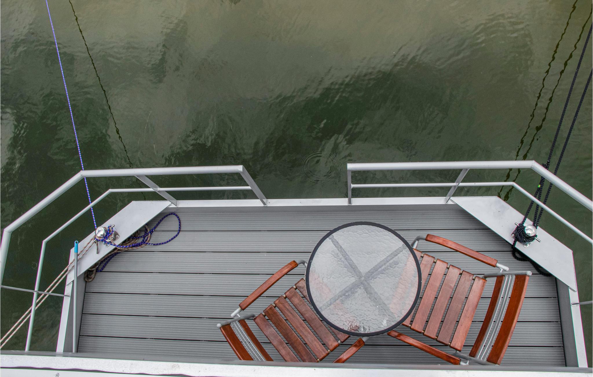 Bemærk: Fra kajen kan husbåden nås med et langt skridt. Den er derfor ikke egnet til personer med gangbesvær. Billederne er vejledende og viser typen af husbåd.