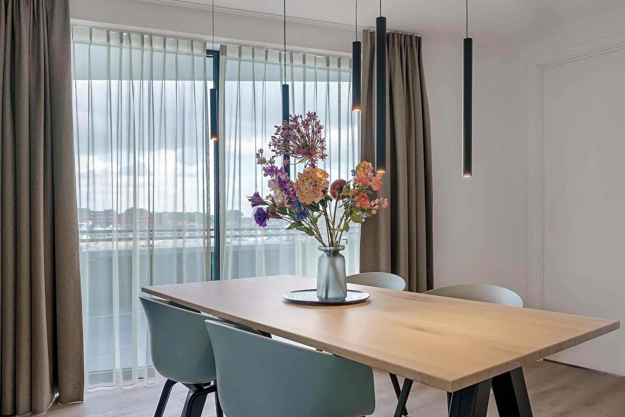 Beliggende på første sal tilbyder denne indbydende familielejlighed den perfekte blanding af komfort og stil, designet til at gøre ethvert ophold mindeværdigt. Det åbne opholdsrum har et hyggeligt opholdsområde, et spisebord til familiemåltider og et elegant smart-tv til dine underholdningsbehov. Et veludstyret åbent køkken venter på den håbefulde kok, komplet med en espressomaskine til din morgenkaffe, en ovn, opvaskemaskine, køle-fryseskab og alle de nødvendige tallerkener og bestik for at gøre madlavningen til en leg. Ud over lejligheden byder Breskens dig velkommen med sin charme ved havet og pulserende atmosfære. Kun en kort gåtur til stranden vil du finde dig selv i at slikke sol og havbrise. Udforsk den maleriske havn, spis på lokale fiskerestauranter, eller vandre gennem naturskønne naturreservater. Uanset om du er fan af udendørs eventyr eller blot ønsker at slappe af, har Breskens noget for enhver smag. Begge soveværelser tilbyder et privat tilflugtssted, hver med en plys dobbeltseng, et smart-tv til afslapning sent om aftenen og en-suite badeværelser, der tilføjer et strejf af luksus. Hvert badeværelse er komplet med brusekabine, håndvask og toilet. For ekstra bekvemmelighed inkluderer lejligheden en vaskemaskine, en balkon til at nyde frisk luft og gratis parkering. Plus, med en ladestander til elbiler og en elevator, der tager dig direkte til dit gulv, er komfort og lethed garanteret.