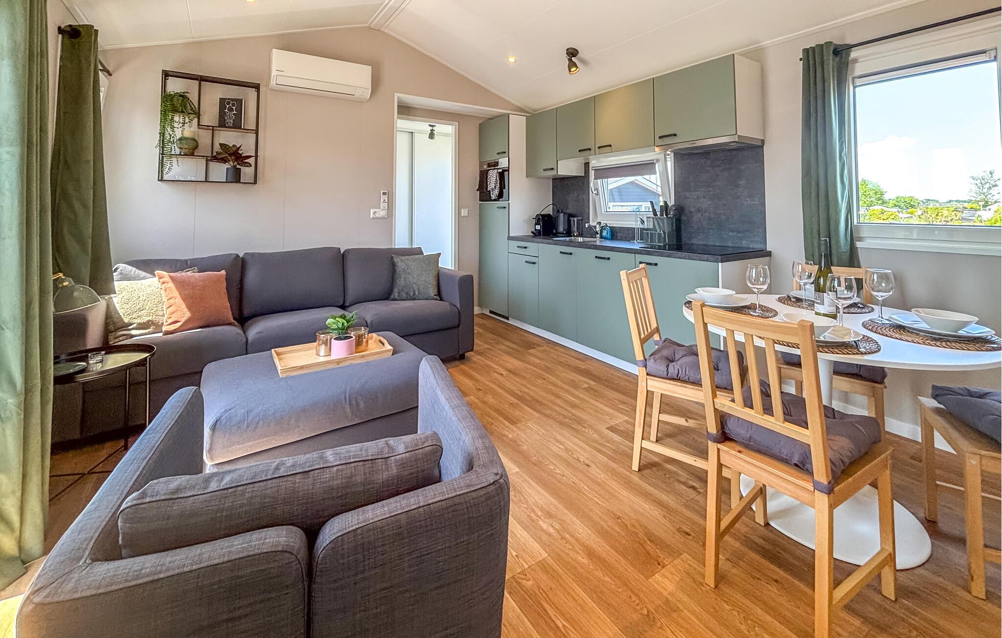 Velkommen til dette indbydende chalet, hvor I kan tage ud at bade lige fra terrassen. Hyggelige værelser med moderne og attraktive møbler samt en fantastisk udsigt gør jeres ophold til en fornøjelse. Efter jeres aktiviteter kan I finde jer til rette i siddeområdet, se en film eller planlægge fremtidige udflugter over et måltid sammen og nyde tiden sammen.