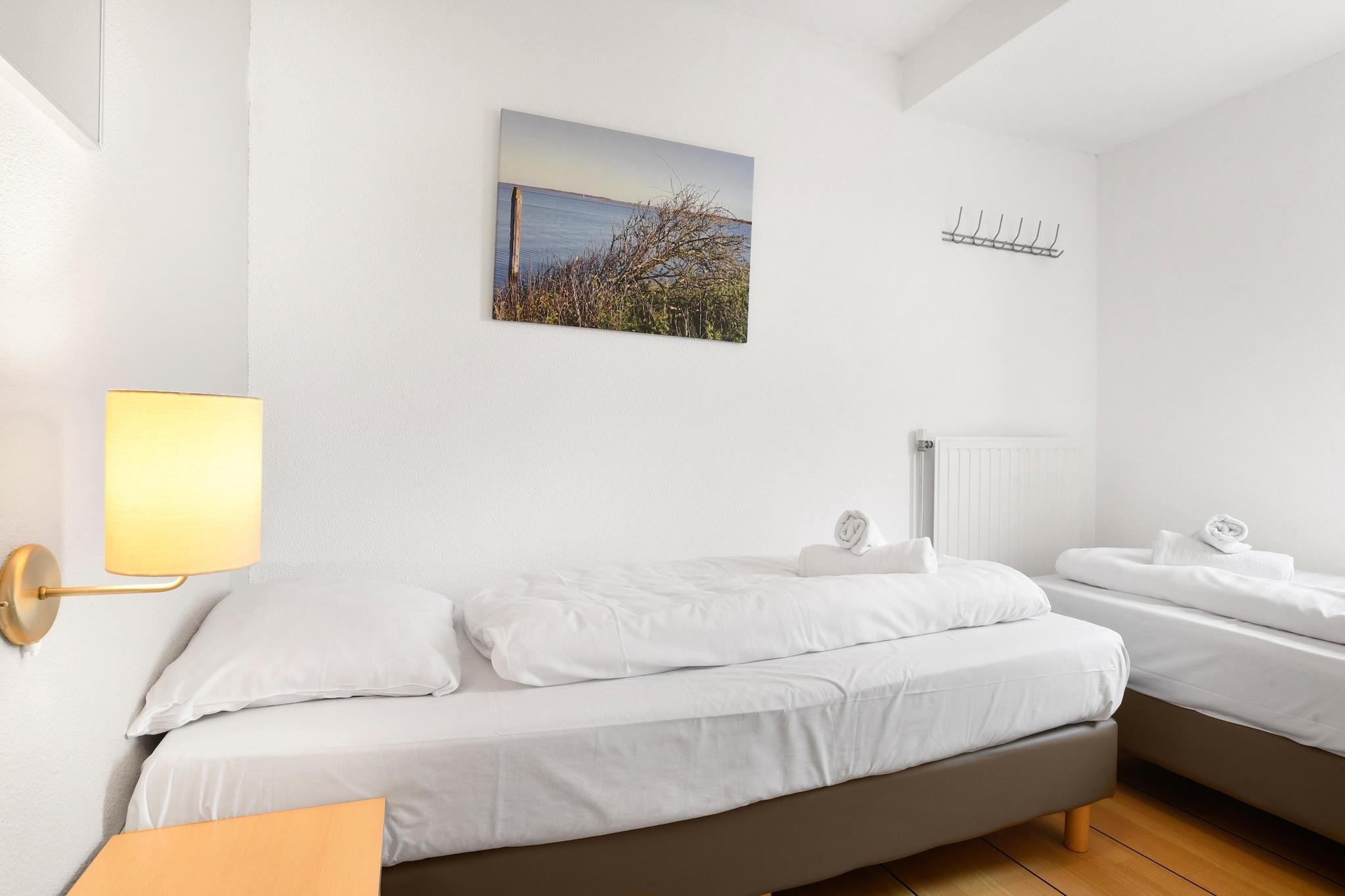 Denne lejlighed er centralt beliggende i et lille kompleks med højst to etager i den rummelige feriepark Parc Port Greve. Ferieparken ligger ved den smukke Grevelingenmeer, i udkanten af byen Brouwershaven, ikke langt fra Brouwersdam. Lejligheden er komfortabel og fuldt møbleret og ligger på første sal. Denne etage er tilgængelig via trapper og er derfor mindre egnet til gæster med nedsat mobilitet. Der er en stue med tv med Chromecast og en spilleboks. I det åbne køkken finder du blandt andet en mikrobølgeovn og en opvaskemaskine. Du har to soveværelser, hver med to enkeltsenge med boxmadras. I det ene værelse er sengene skubbet sammen til en dobbeltseng. På badeværelset er der badekar eller bruser og toilet. Vaskemaskine, barneseng og højstol er standardudstyr. Udenfor er der en balkon med havemøbler. Der er parkering til én bil ved lejligheden. Der er også centrale parkeringspladser ved ferieparken. På ferieparken Parc Port Greve kan du reservere forskellige feriehuse, bungalows og lejligheder til fire til tolv personer. Bemærk venligst: Den indendørs pool vil være lukket fra mandag den 5. januar 2026 indtil videre varsel. Vi beklager eventuelle ulemper, dette måtte forårsage, og sætter pris på din forståelse.