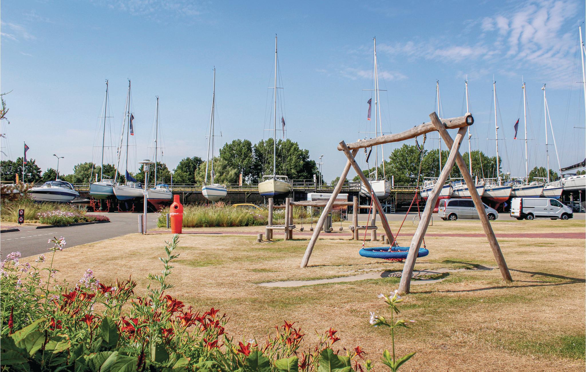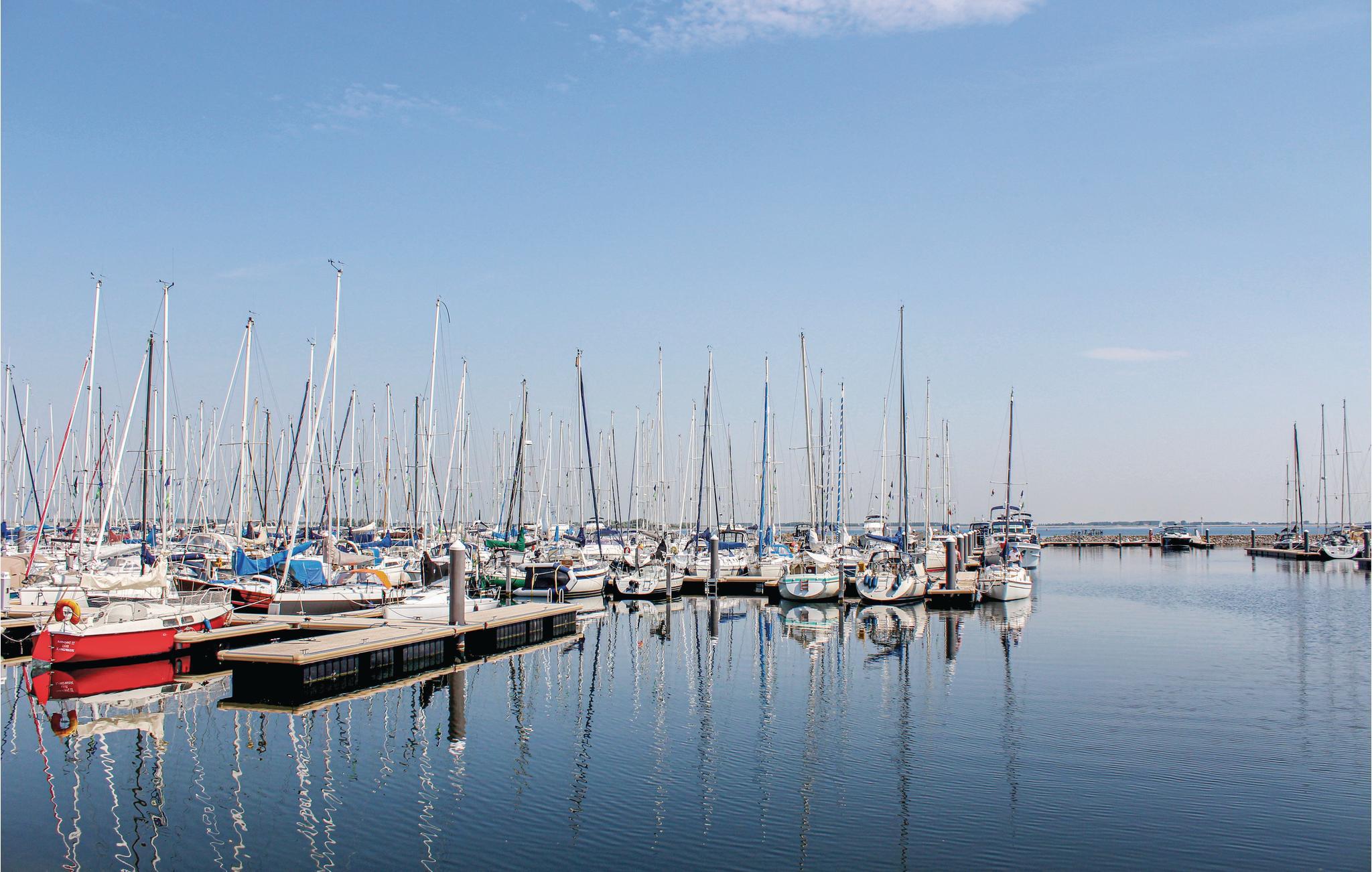 På grunden foran huset, der ligger ved havnen, er der en legeplads, en indendørs pool, en sø med mulighed for fiskeri og en bowlingbane.