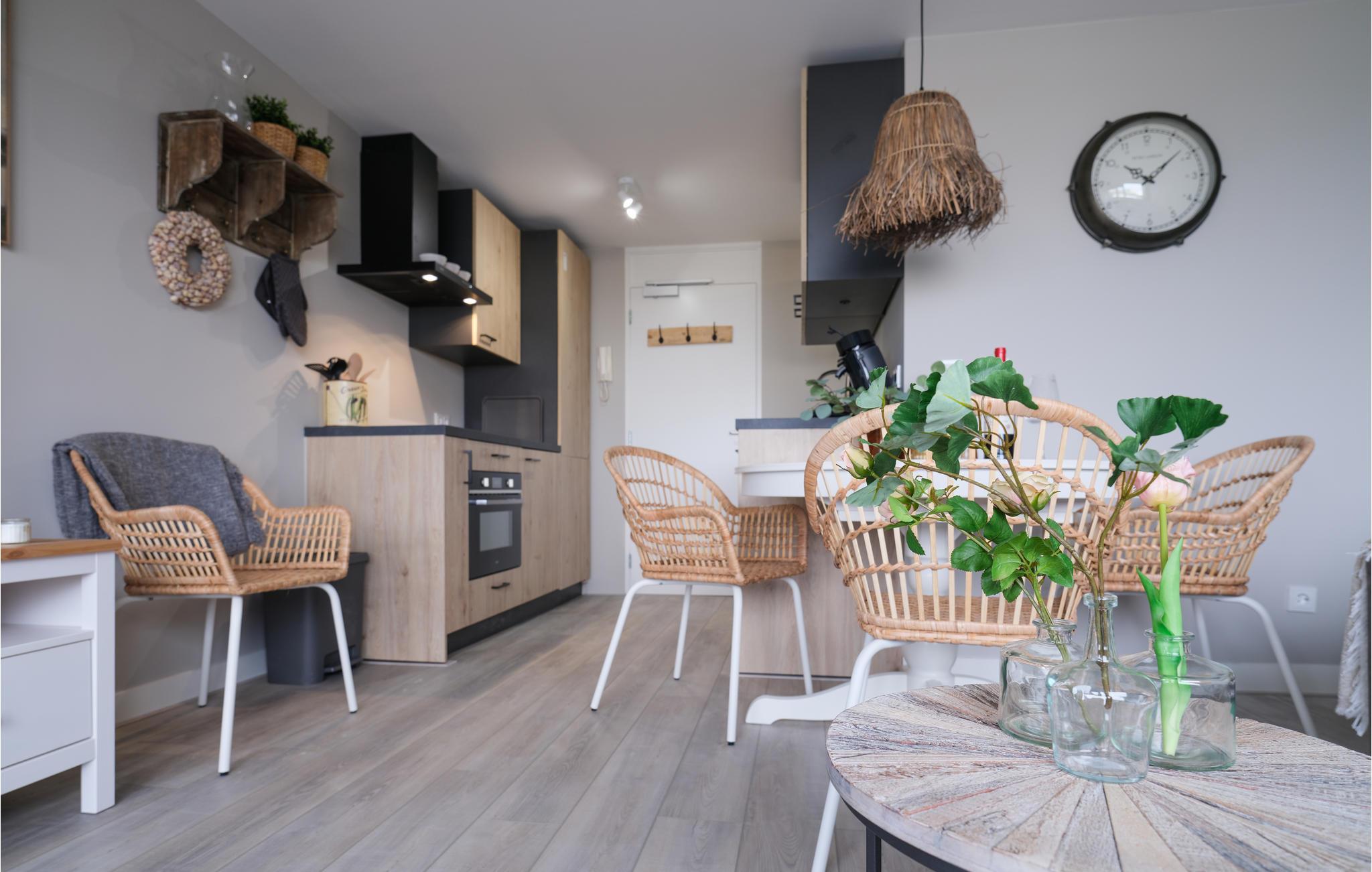 Denne lejlighed med udsigt over lystbådehavnen har alt, hvad I skal bruge til en ubekymret ferie. En indbydende stue med en komfortabel sofa, en smuk træfinish og et moderne køkken skaber en atmosfære, hvor I hurtigt kan slappe af. Uanset om I slapper af med en kop kaffe i sofaen, lytter til jeres yndlingspodcast eller laver et måltid sammen – her sætter I tempoet for jeres feriedag.