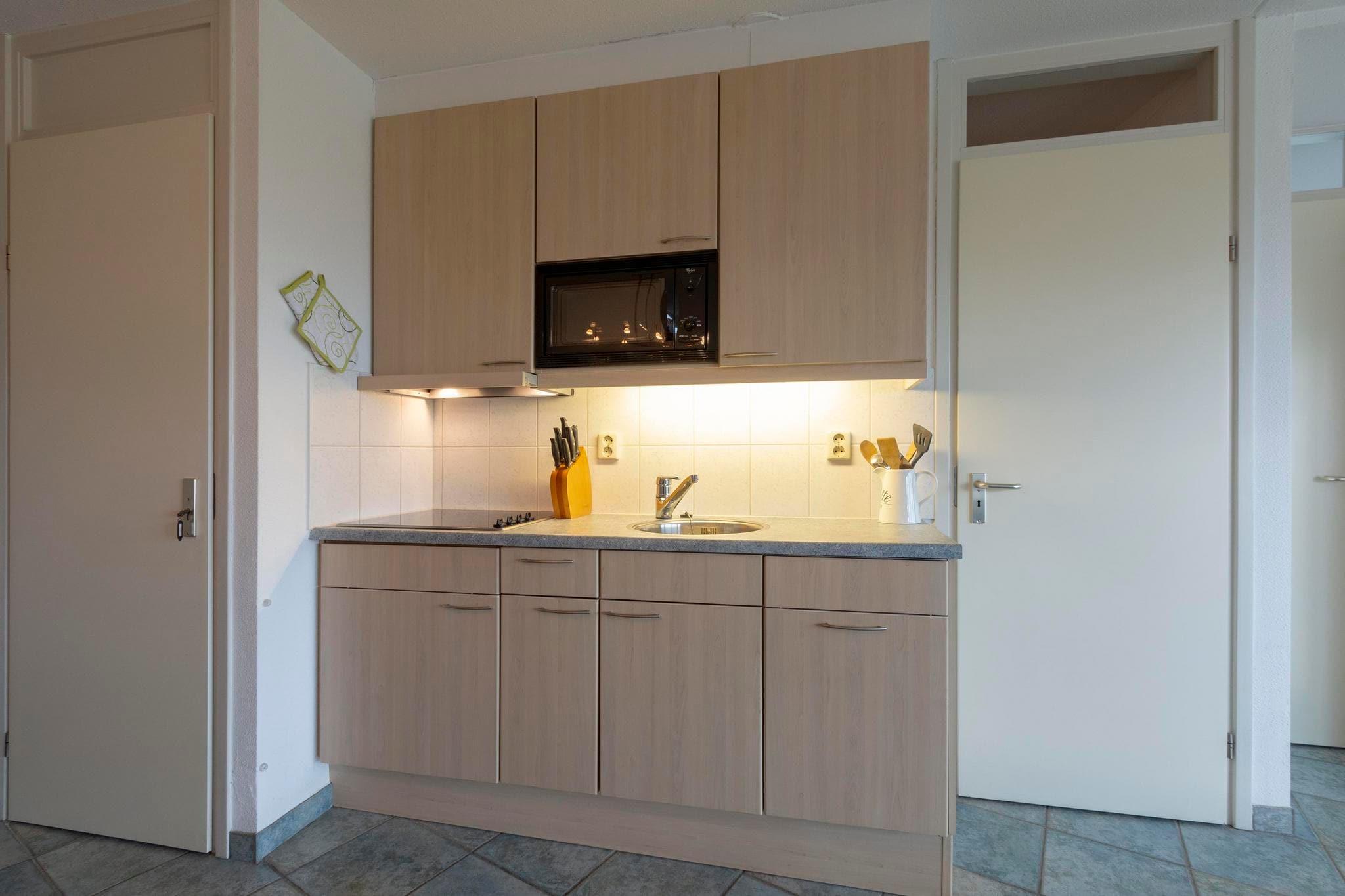 Nyd en smuk ferielejlighed med stor balkon, beliggende lige over for strandindgangen i Callantsoog. Det er næsten umuligt at komme tættere på havet! Lejligheden tilbyder en fantastisk udsigt fra balkonen over klitterne og strandindgangen, og du kan gå til den charmerende landsbytorv i Callantsoog på bare 2 minutter. Lad bilen blive hjemme og udforsk til fods eller på cykel. Lejligheden er varmt møbleret med masser af naturligt lys og har et åbent, fuldt udstyret køkken. Der er to soveværelser med komfortable senge, og badeværelset har bruser og håndvask. Den rummelige balkon er perfekt til solbadning, spisning eller afslapning med en god bog. Gratis Wi-Fi er tilgængelig, og op til to hunde er tilladt, hvilket gør det til en kæledyrsvenlig mulighed. Parkering er bekvem i den underjordiske garage, der giver to parkeringspladser til din brug. Denne beliggenhed tilbyder den perfekte kombination af havudsigt, nem adgang til stranden og moderne komfort for en mindeværdig ferie.