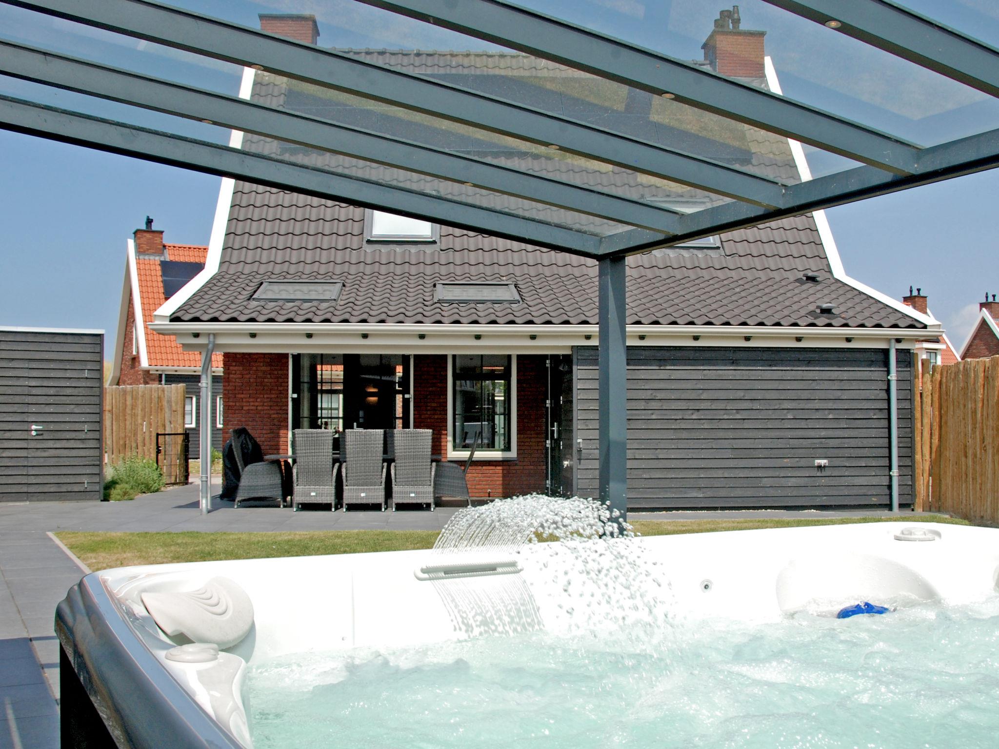 "8 persoons vrijstaande villa met hottub", 5-room villa 126 m2. Comfortable furnishings: living room with flat screen and gas heater. 1 room with 2 beds (90 cm, length 210 cm), flat screen. Open kitchen (4 hot plates, oven, dishwasher, kettle, microwave, freezer, electric coffee machine) with dining table. Shower/WC, Sauna. Floor heating. Upper floor: with sloping ceilings, 3 rooms, each room with 2 beds (90 cm, length 210 cm), flat screen. Bath/WC. Garden. Terrace furniture, box-room. Facilities: washing machine, dryer, hair dryer. Internet (WiFi, free). Parking (2 cars) at the house. E-charging station. The outdoor hottub is suitable for 6 people. This accommodation is only bookable for guests aged 26 and over.