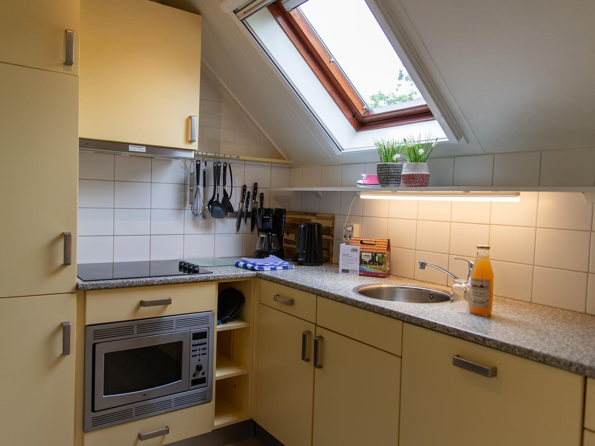 "6-persoons", 3-room house 86 m2 on 2 levels. Comfortable furnishings: entrance hall with separate WC. Living/dining room with dining table, flat screen and CD-player. Exit to the terrace. Alcove. Open kitchen (4 hot plates, dishwasher, electric coffee machine, combination microwave). Bath or shower. Heating. Upper floor: (steep stair) with sloping ceilings, 1 double bedroom with 2 beds. Mezzanine with 2 beds. Terrace. Terrace furniture. Facilities: Internet (WiFi, free). Parking (1 car) at the house. Please note: non-smoking house. Smoke alarm. The sleeping alcove is a double cupboard bed. It is also possible there is a double bedroom instead of the cupboardbed. Pets on request. Instead of an enclosed bedroom, some sleeping areas are located in an open-plan area (gallery, alcove, etc.).