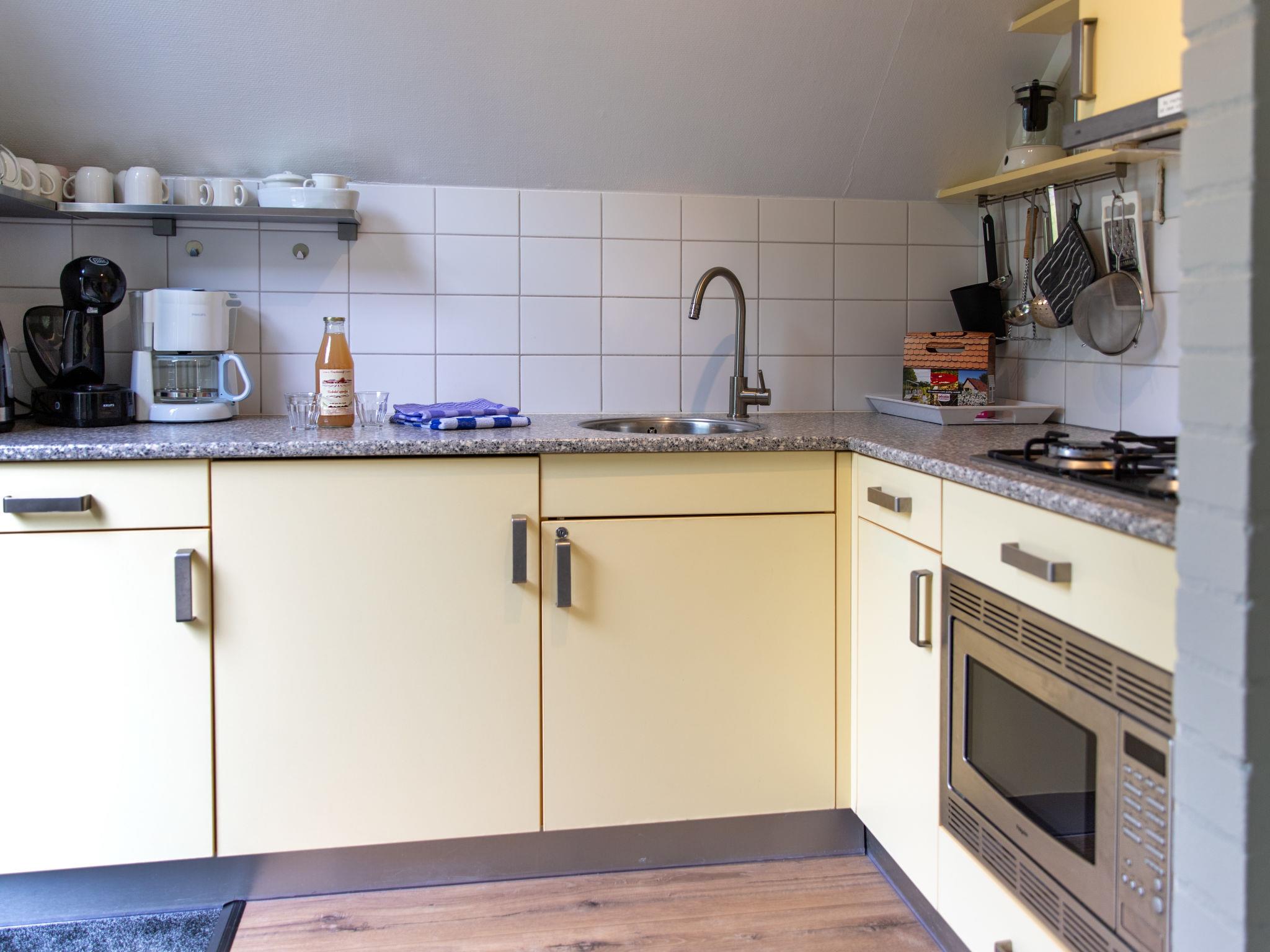 "4-persoons", 2-room house 60 m2 on 2 levels. Comfortable furnishings: living/dining room with dining table, flat screen and CD-player. Exit to the terrace. Alcove with 1 double bed (1 x 140 cm, length 200 cm). Open kitchen (4 hot plates, electric coffee machine, combination microwave). Bath or shower/WC. Heating. Upper floor: (steep stair), 1 double bedroom with sloping ceilings with 2 beds. Terrace. Terrace furniture. Facilities: Internet (WiFi, free). Please note: non-smoking house. Smoke alarm. Pets on request. Instead of an enclosed bedroom, some sleeping areas are located in an open-plan area (gallery, alcove, etc.).